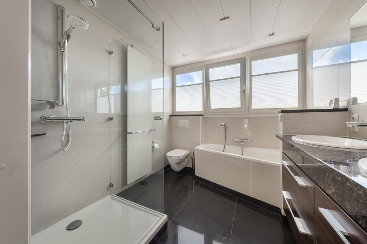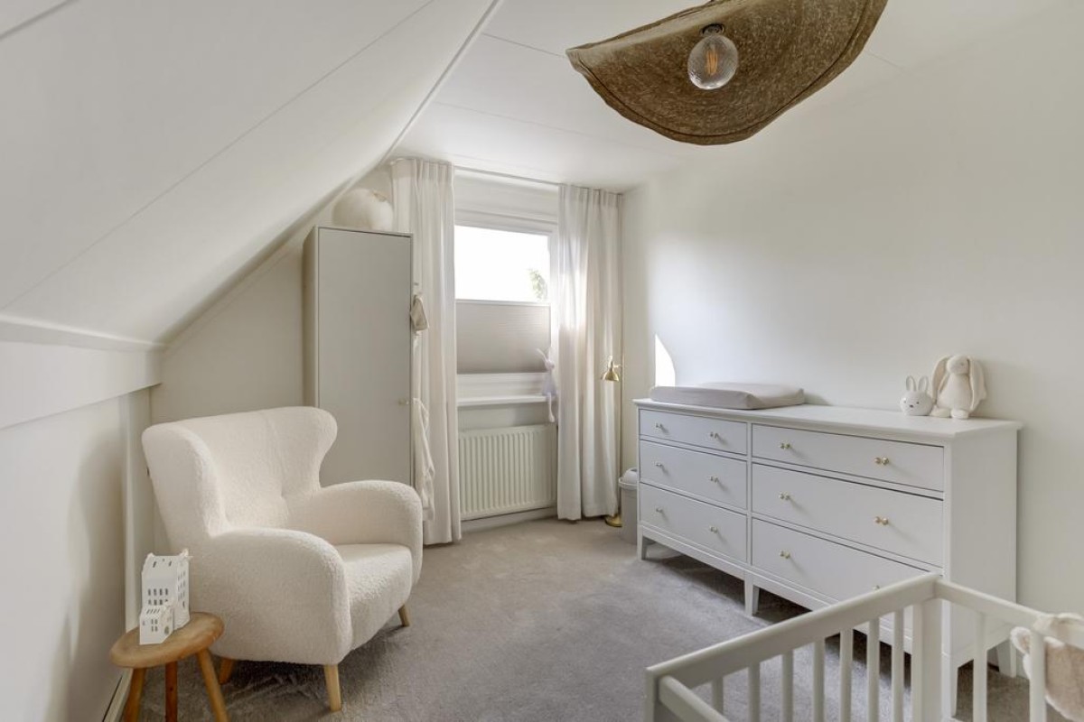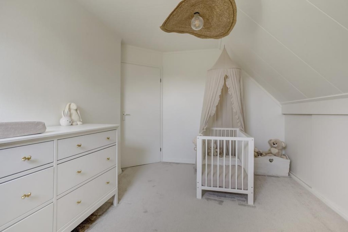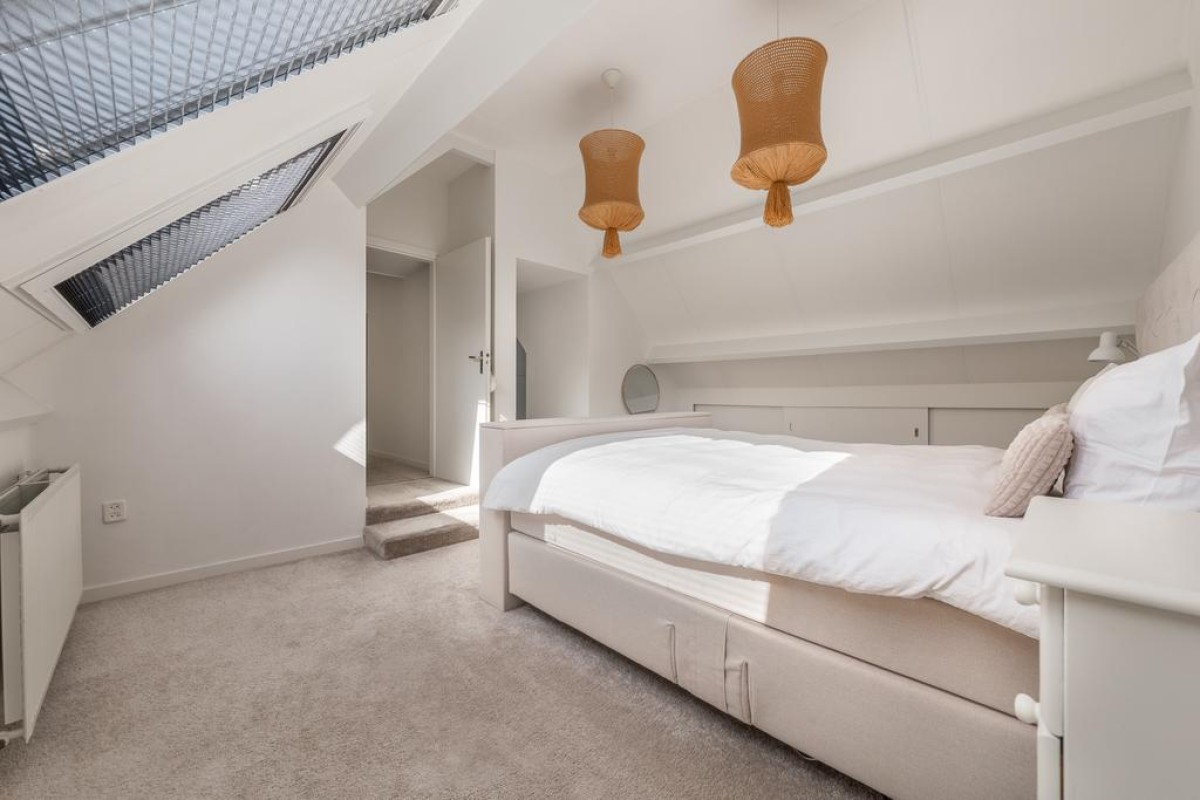 1e verdieping: vaste trap naar de overloop met aansluitend 3 mooie slaapkamers waarvan 1 slaapkamer voorzien is van een zeer riante walk-in-closet. De walk-in-closet kan tevens als 4e slaapkamer gebruikt worden. Elke kamer beschikt over veel bergruimte achter de knieschotten. Tevens is aansluitend de moderne badkamer voorzien van een onderhoudsarme dakkapel, 2e hangcloset, ruime douche met cabine, ligbad, wastafelmeubel met dubbele wastafel en designradiator gelegen.