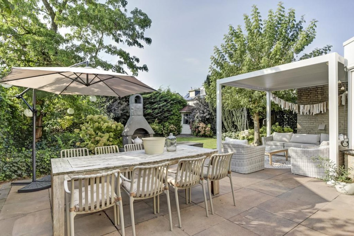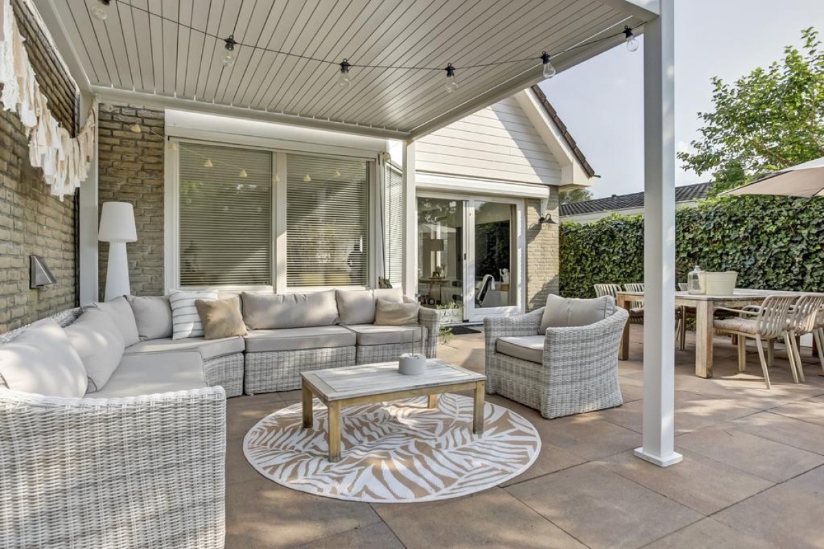 * Fraaie overkapping met lamellen tegen de achtergevel