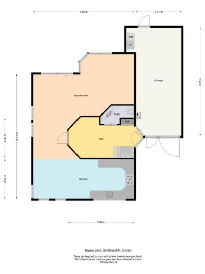 Deze informatie is door ons met de nodige zorgvuldigheid samengesteld. Onzerzijds wordt echter geen enkele aansprakelijkheid aanvaard voor enige onvolledigheid, onjuistheid of anderszins, dan wel de gevolgen daarvan. Alle opgegeven maten en oppervlakten zijn indicatief.