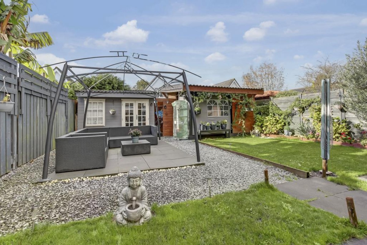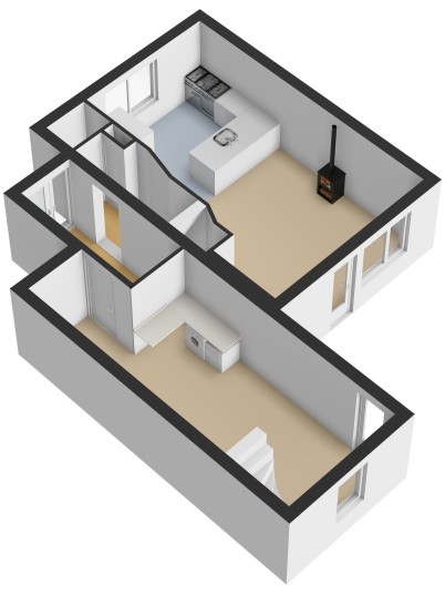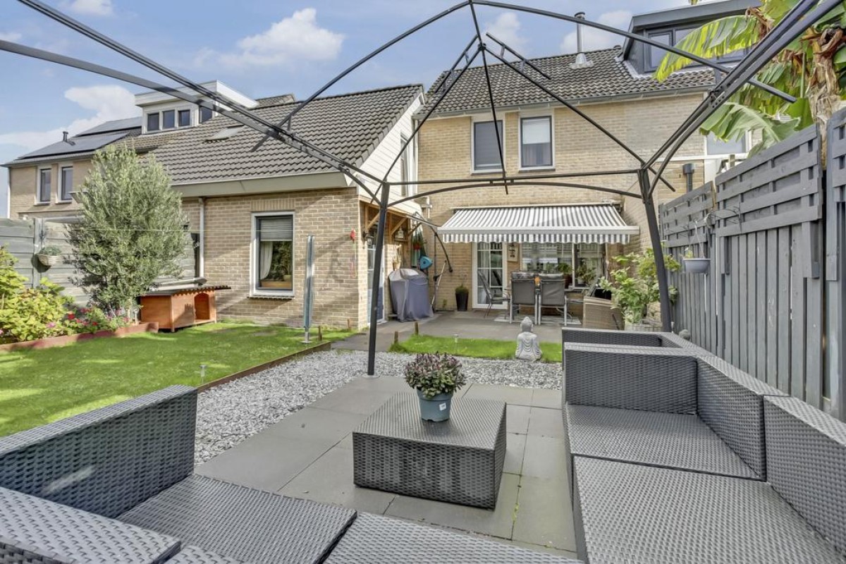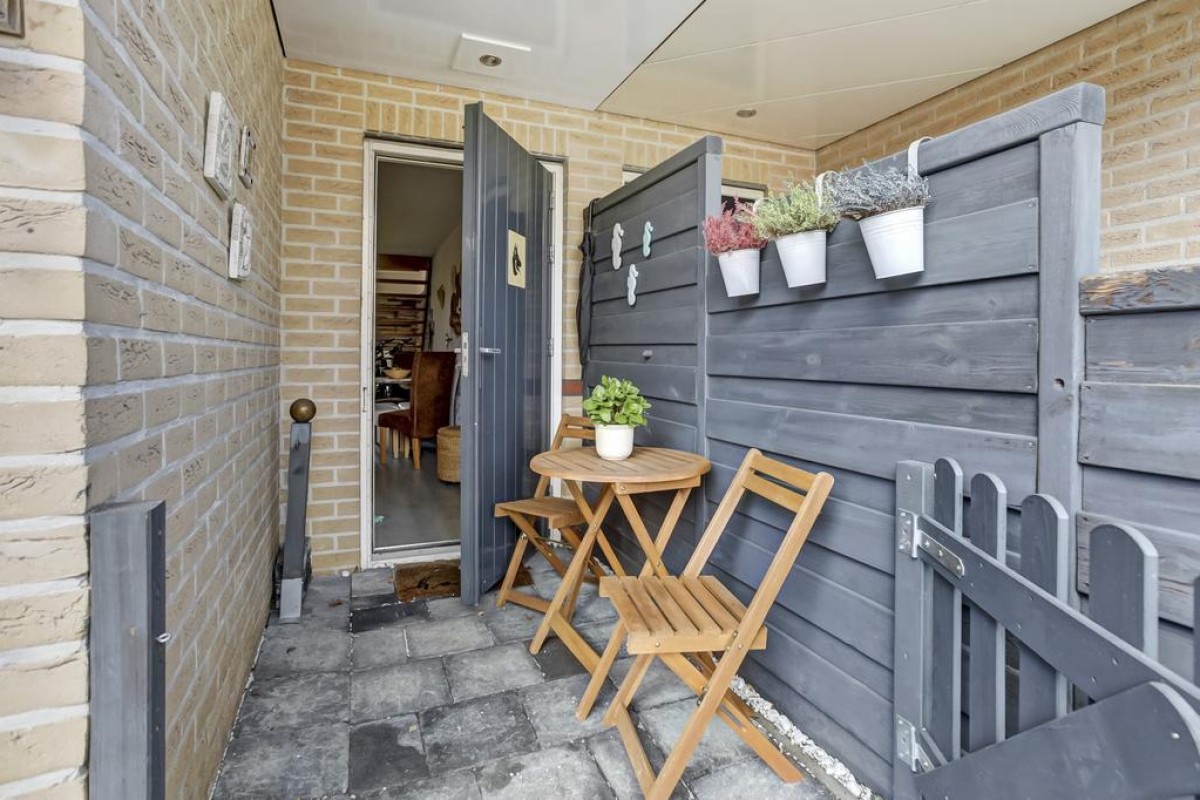 Vanuit de hal is de ruime aangebouwde multifunctionele ruimte met ruime opbouw bereikbaar welke voorzien is van een hoek opgestelde kitchenette met een waskom en opstelplaats voor de wasapparatuur, alsmede een deur naar de achtertuin en een vaste trap naar de riante zolder welke in gebruik is als slaapvetrek. Vanuit de multifunctionele ruimte zijn zowel de oprit als de fraai aangelegde tuin op het zuidwesten bereikbaar. De verzorgde tuin is voorzien van een groot terras met zonwering, een gazon, border met vaste beplanting, een zonneterras, een houten berging voorzien van elektra en een houten overkapping met houtkachel.