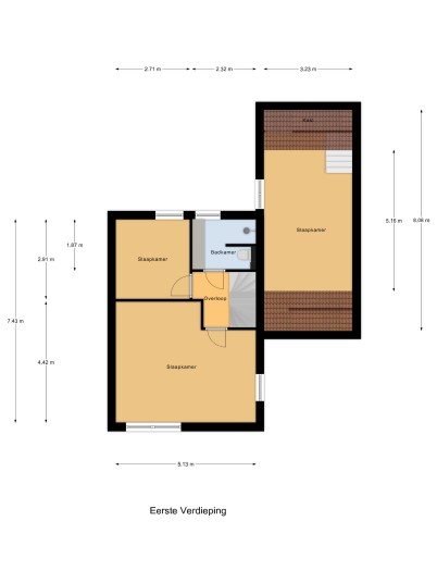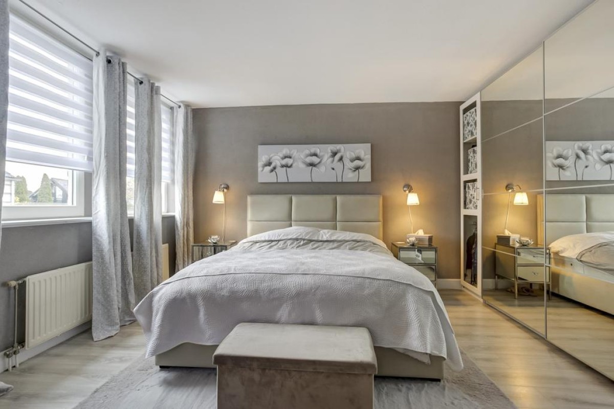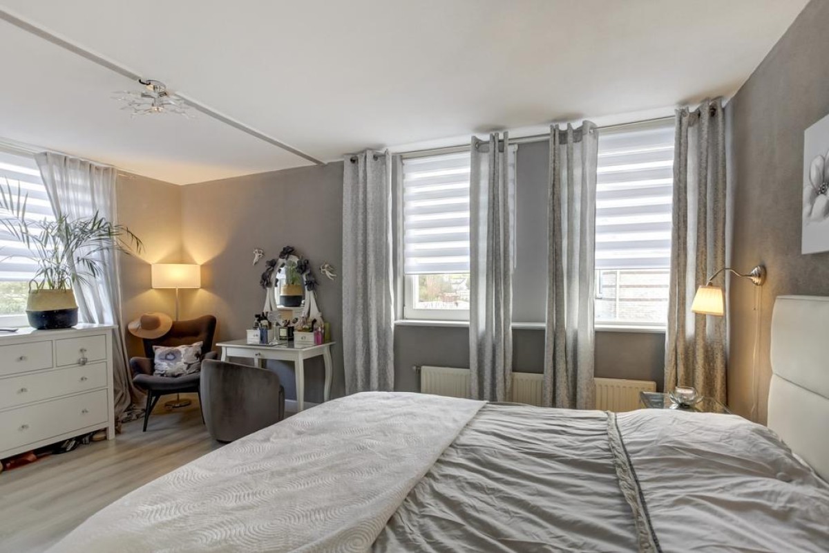 Eerste verdieping: overloop met aansluitend 2 mooie slaapkamers (voorheen 3 slaapkamers welke gemakkelijk weer te realiseren zijn). De luxe badkamer is voorzien van een fraaie inloopdouche, 2e hangcloset en een boomstam blad met rivierstenen waskom. De vloeren op de etage zijn afgewerkt met een mooie laminaatvloer.