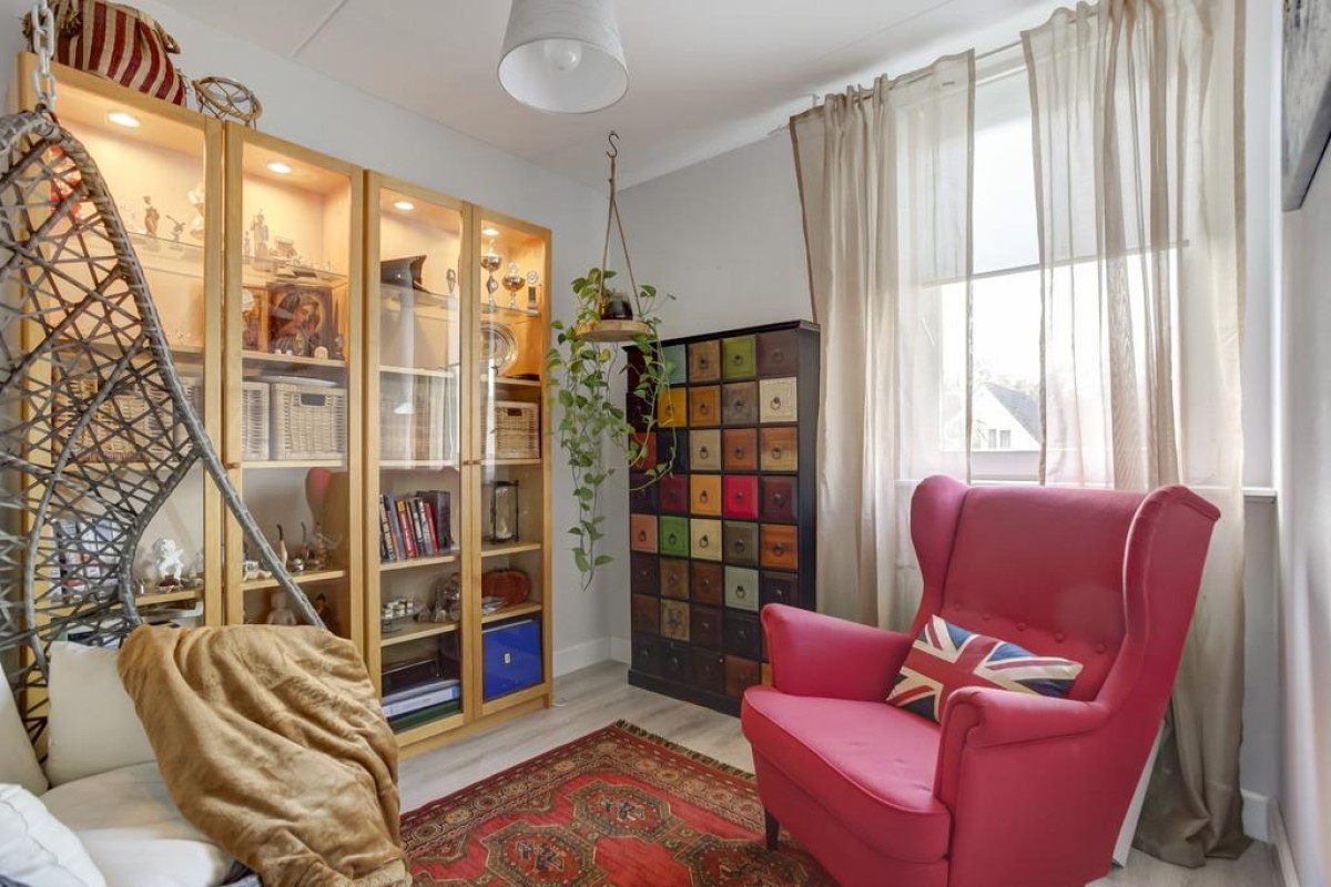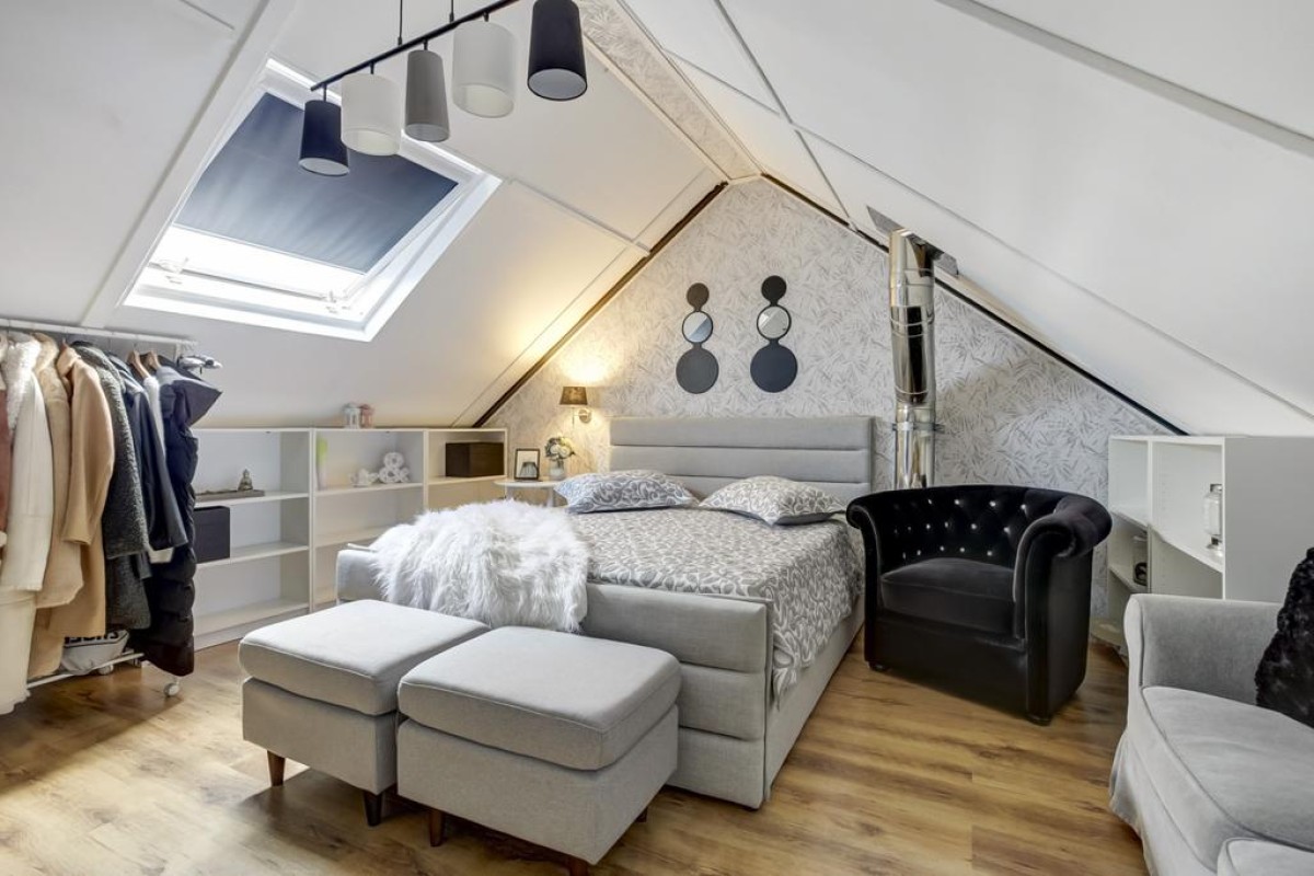 Tweede verdieping: vaste trap naar ruime zolderkamer welke is voorzien van een groot dakraam, een laminaatvloer, veel bergruimte en tevens is hier de c.v.-opstelling (Vaillant HR).
