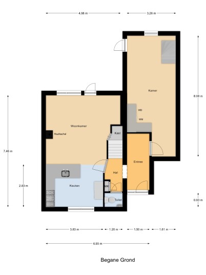 Begane grond: overdekt entree, ruime hal met meterkast, toiletruimte met toilet en fonteintje.