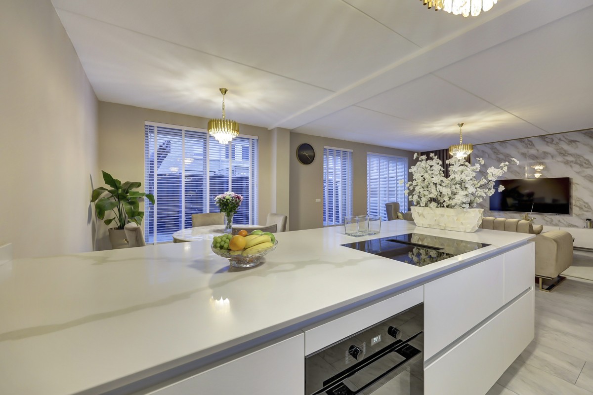 * Luxe woonkeuken met schiereiland en luxe Miele inbouwapparatuur