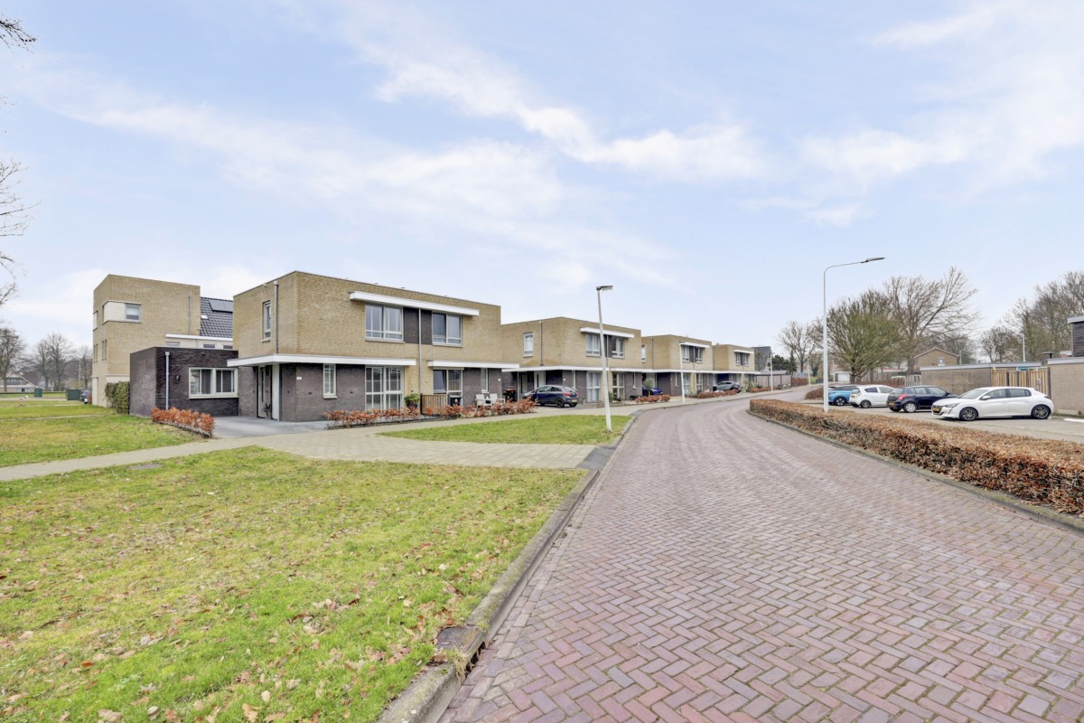 Op een prachtige vrije locatie in het nieuwbouw project "Aan de Zuid" op 191m² eigen grond is deze levensloopbestendige twee-onder-een-kapwoning gelegen. Het hoekperceel biedt alle vrijheid rondom de woning, waarbij de woning aan de achterzijde is uitgebouwd. De woning is zo goed als nieuw, zeer duurzaam en heeft een moderne afwerking met een erg gunstige ligging. Aan de voorzijde biedt het perceel een ruime oprit met twee parkeerplaatsen op eigen grond. Het Van Veldhuizenbos is nabijgelegen met diverse wandel- en fietspaden.