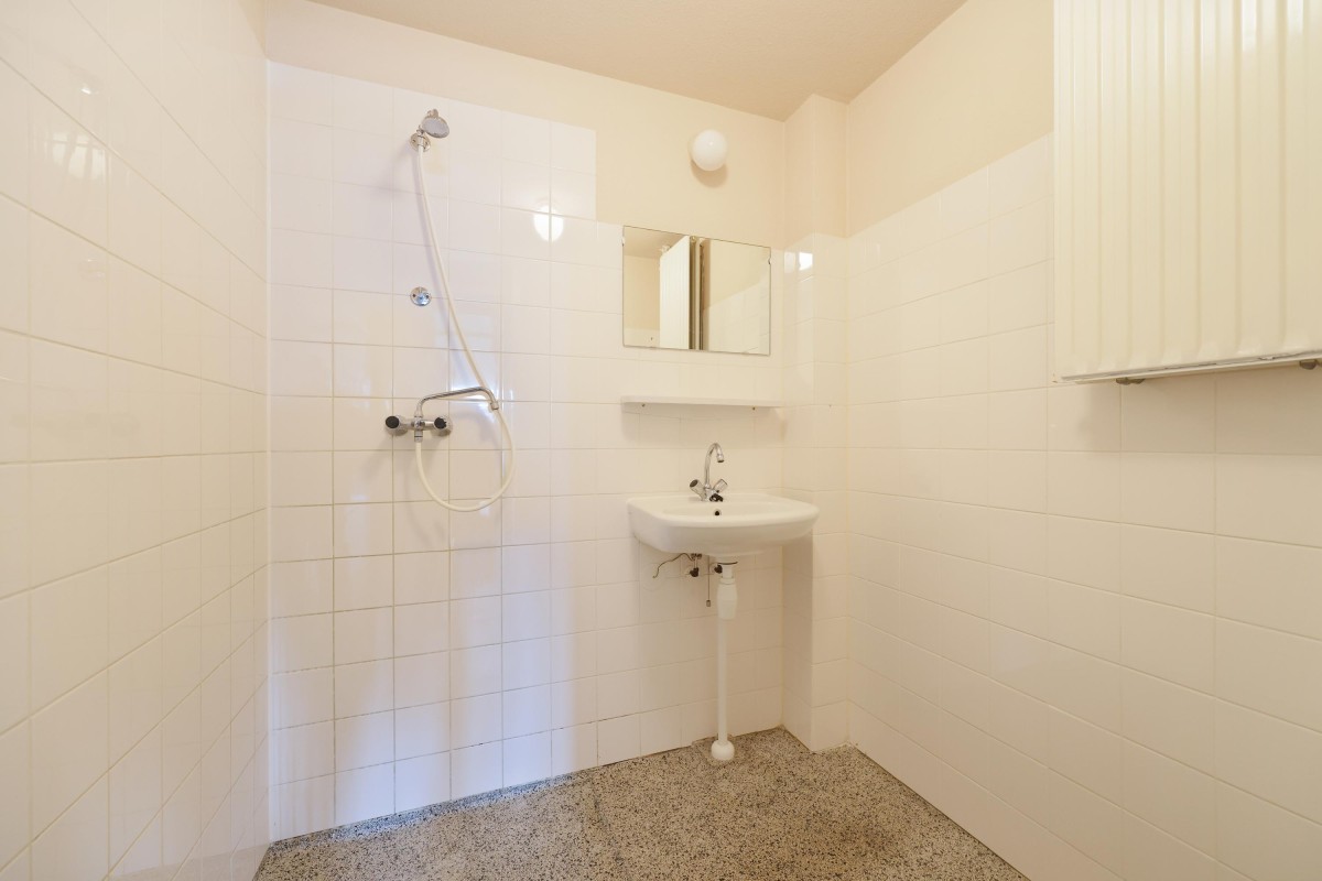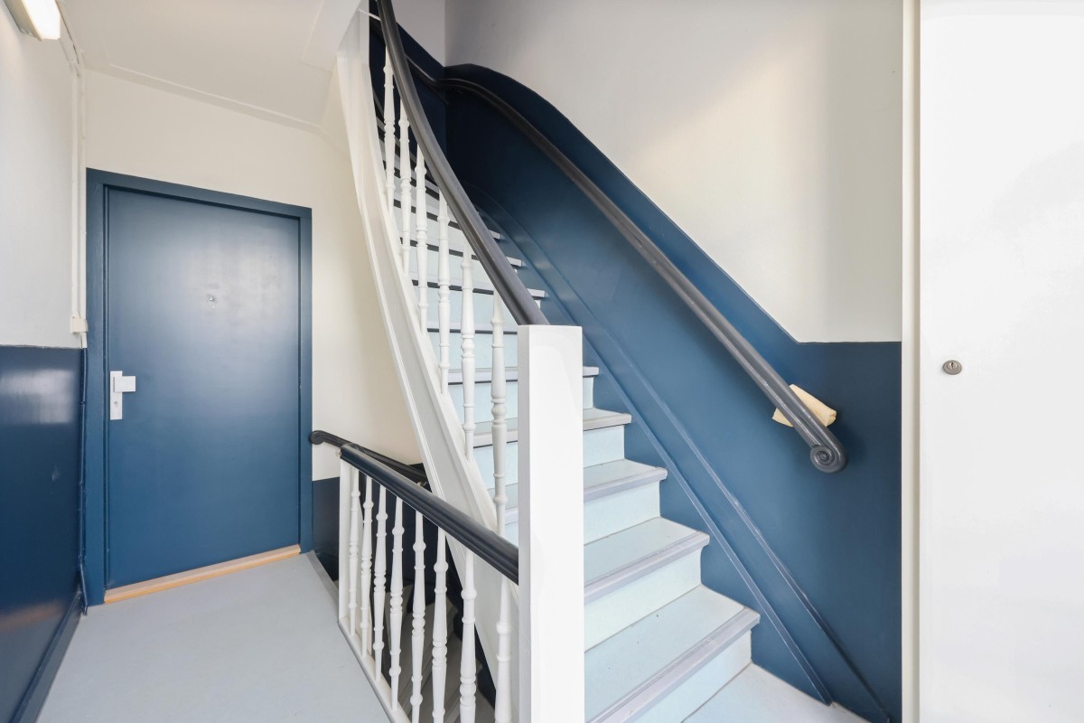 Through the shared staircase, you reach the apartment on the third floor. Upon entering through the front door, you enter the hallway, which provides access to various rooms. You can choose from the door to the toilet with a sink, the bedroom at the back, or the spacious living room at the front with a French balcony and a stunning view over the water. The open kitchen is located at the rear and provides access to the 4.3 m² west-facing balcony. A small storage room contains the washer hookup, mechanical ventilation unit, and central heating system (built in 2015), and leads to the bathroom, which is equipped with a shower and sink.