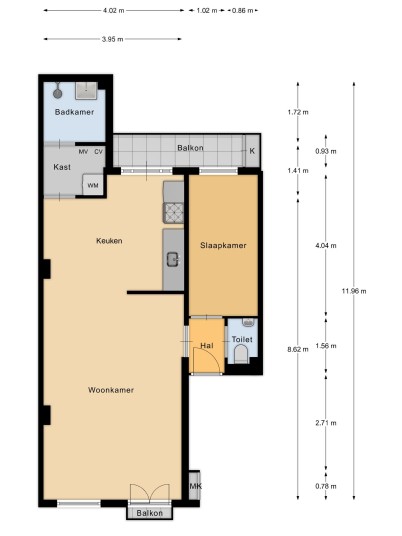 - Woonoppervlakte 54,0 m² conform NEN2580 meetcertificaat;
