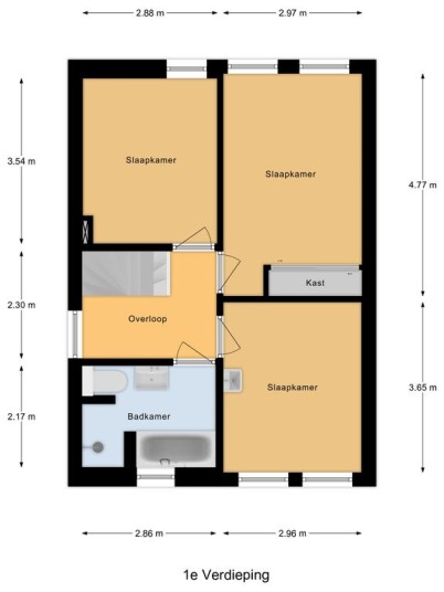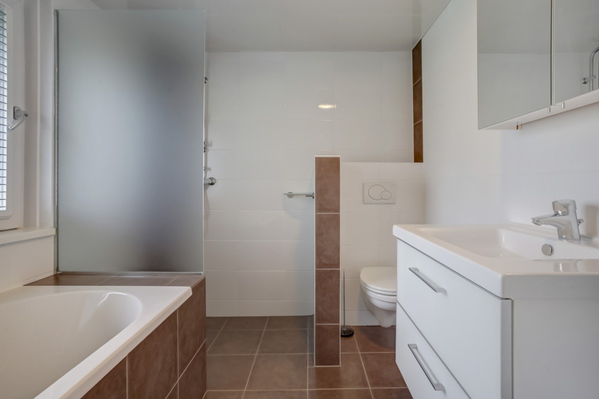 Eerste verdieping: overloop met aansluitend 3 slaapkamers en een luxe badkamer voorzien van een ligbad, 2e hangcloset, wastafelmeubel en een separate inloopdouche. De overloop beschikt over een PVC-vloer en de slaapkamers zijn voorzien van laminaatvloeren.