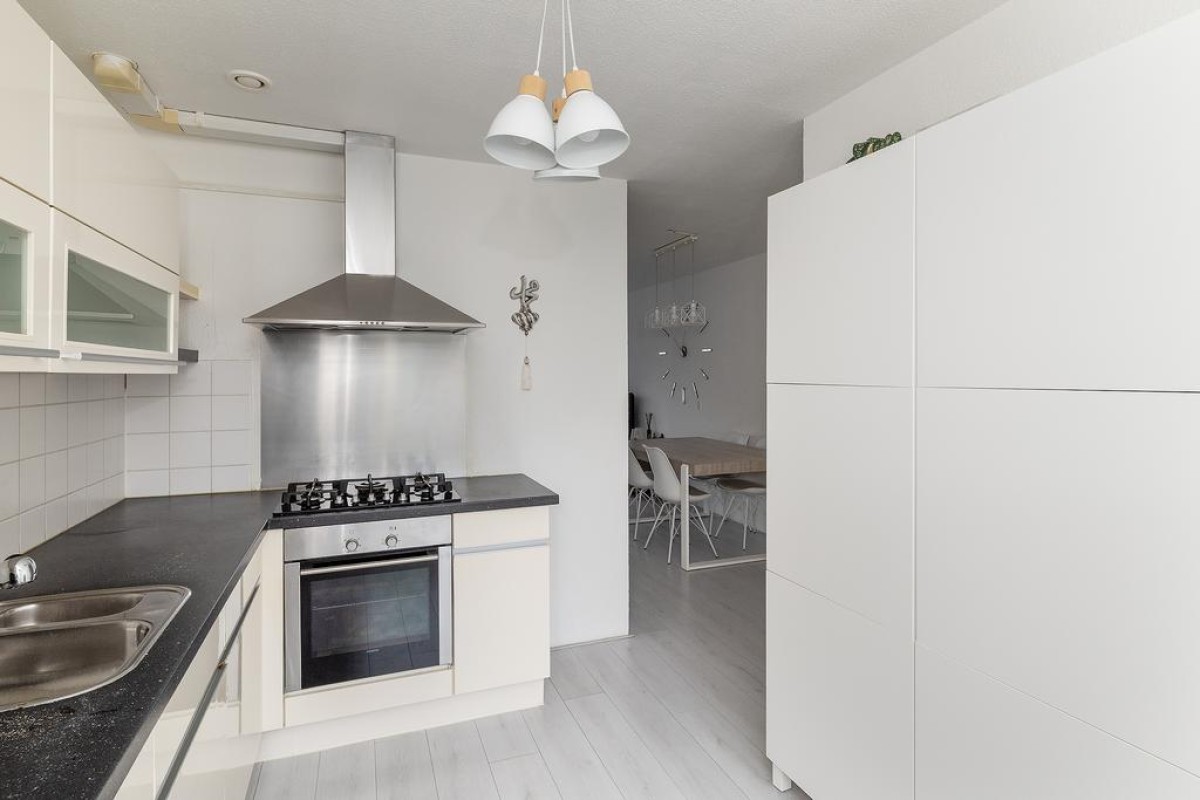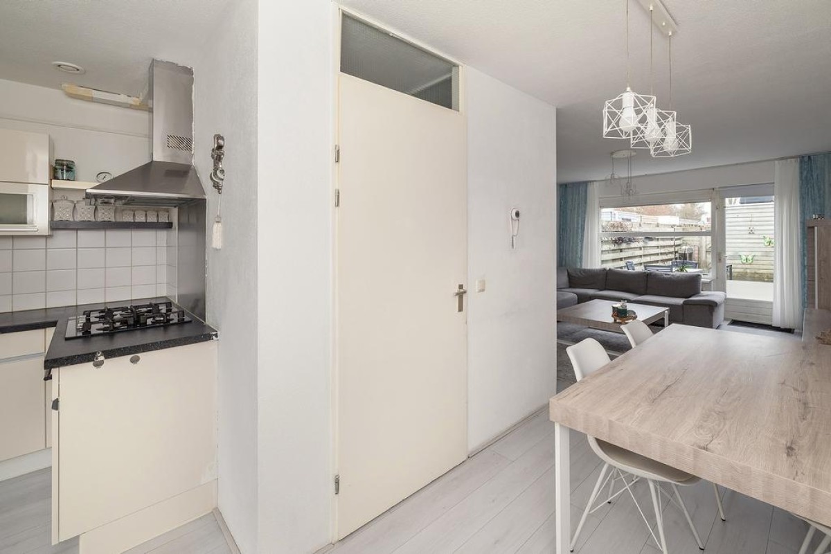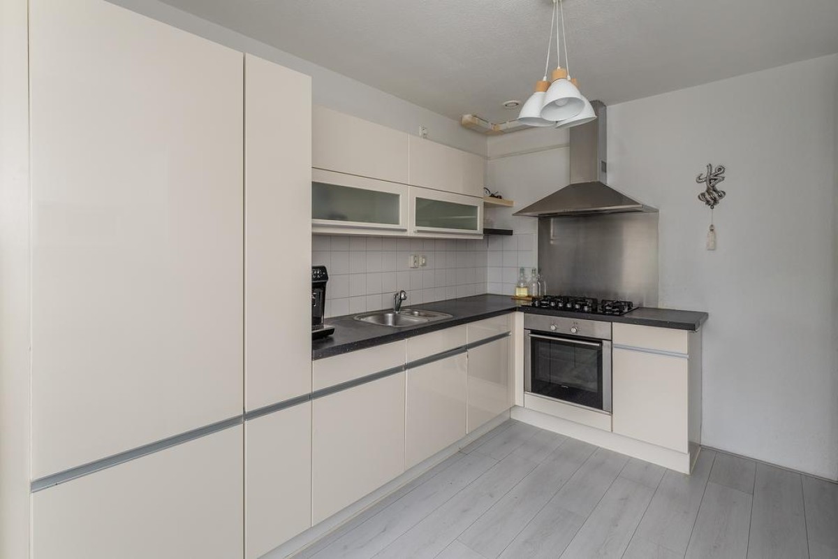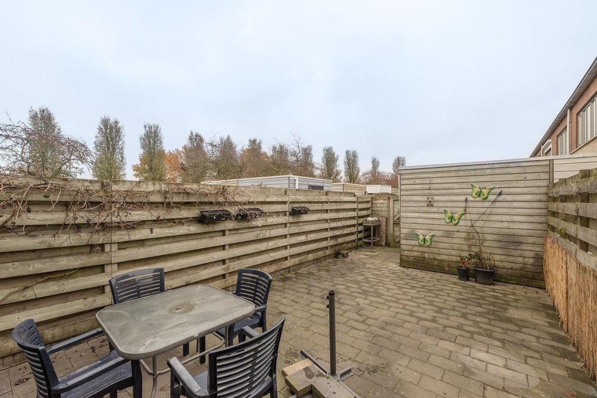 De woning is voorzien van laminaatvloeren. De woning is netjes onderhouden. Het oorspronkelijke bouwjaar is 1996 en het geheel staat op een perceel van 112 m2 met een onderhoudsvriendelijke achtertuin gelegen op het zuidoosten. De tuin is middels een achterom bereikbaar en achter in de tuin staat een houten berging. Middels het achterpad is een prachtig speelveld bereikbaar. Vanuit de keuken aan de voorzijde heb je een mooi zicht over de straat en de tegenover gelegen groenvoorziening. Het parkeren van je auto kan in de straat. Hier is voldoende gelegenheid voor.