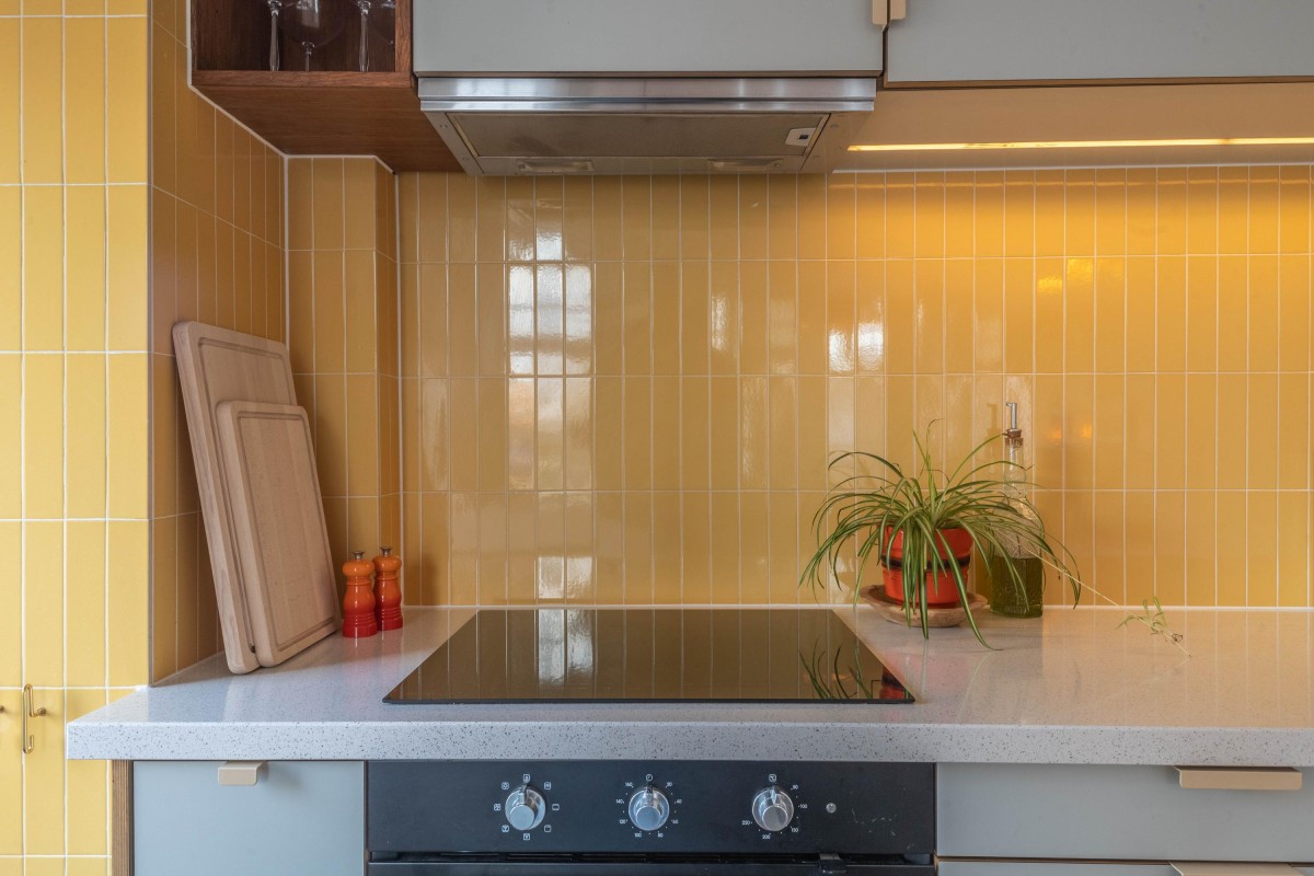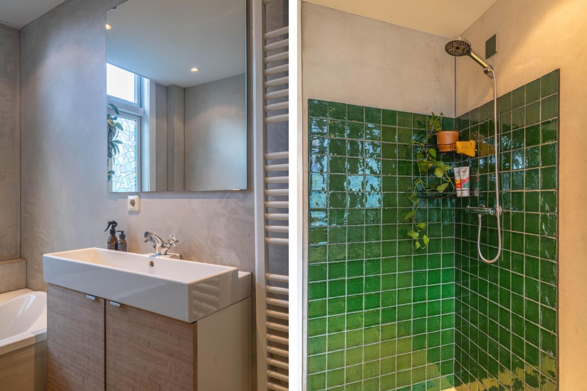 De open keuken met kookeiland is voorzien van moderne inbouwapparatuur, waaronder een oven en inductiekookplaat. Bij het raam bevindt zich een knusse zithoek. Het kookeiland met wastafel biedt de mogelijkheid om, naast de eettafel, gezellig te borrelen aan de bar. De slaapkamers aan de achterzijde zijn rustig gelegen en bieden voldoende privacy. De badkamer is stijlvol ingericht met groene keramische wandtegels en een ligbad. Het raam boven het ligbad zorgt voor natuurlijk licht en een open sfeer. Naast de badkamer bevindt zich een apart toilet.