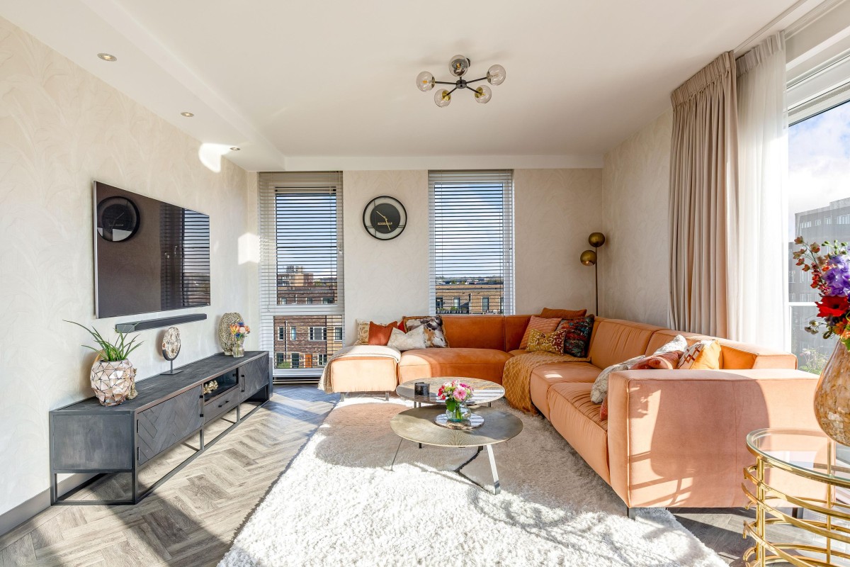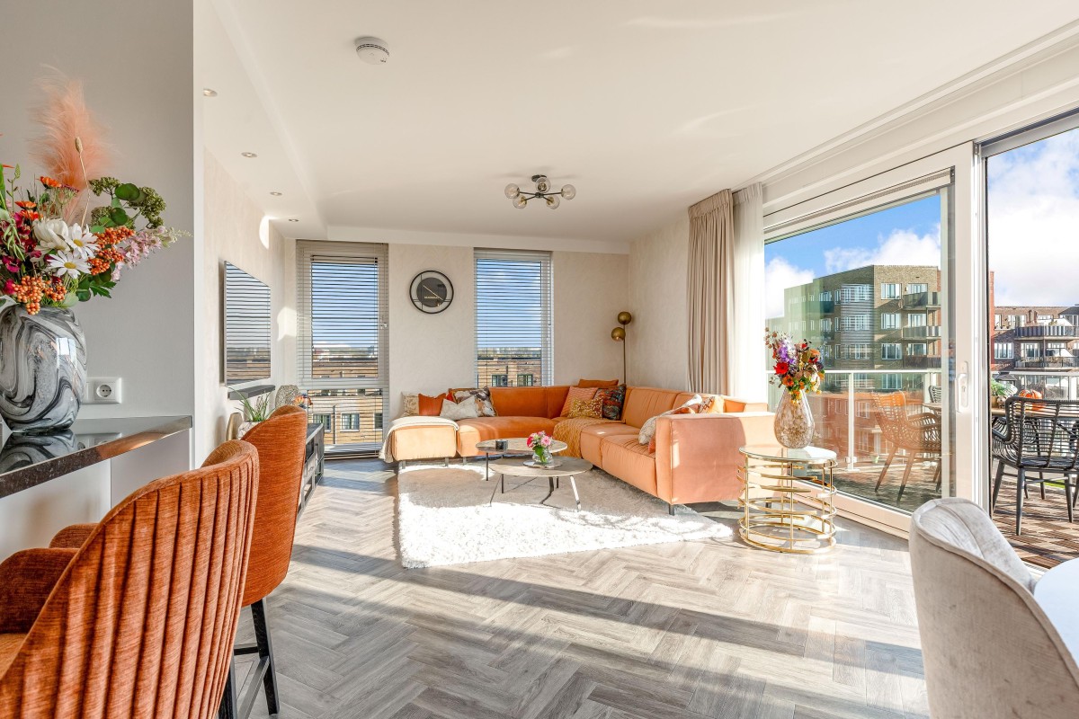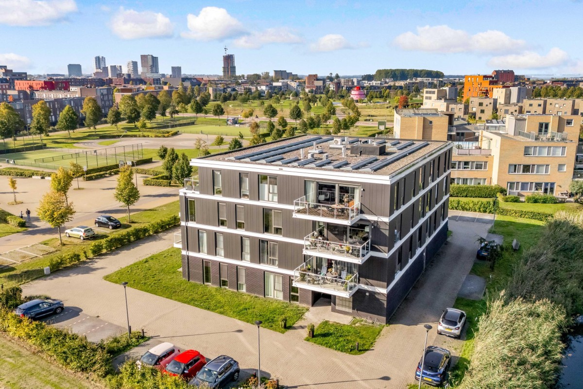 Dit luxueuze 4 kamer appartement van circa 94m2 heeft 2 slaapkamers, een ruime inloopkast en een riante woonkamer met toegang tot het balkon. Door de grote raampartijen en de schuifpui naar het balkon is het appartement zeer licht en geeft het geheel een ruimtelijk gevoel. Het appartement is gelegen aan de rand van Almere Poort en op loopafstand van het NS station Almere Poort.