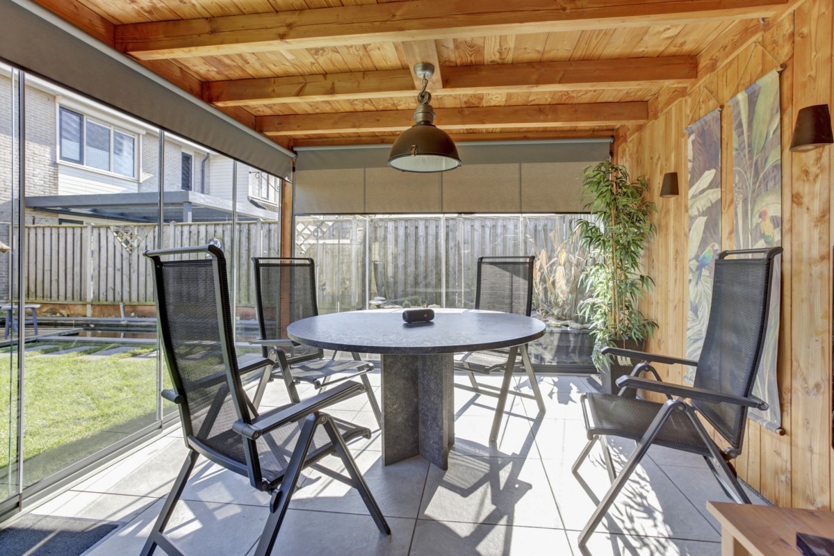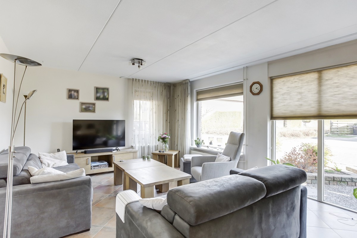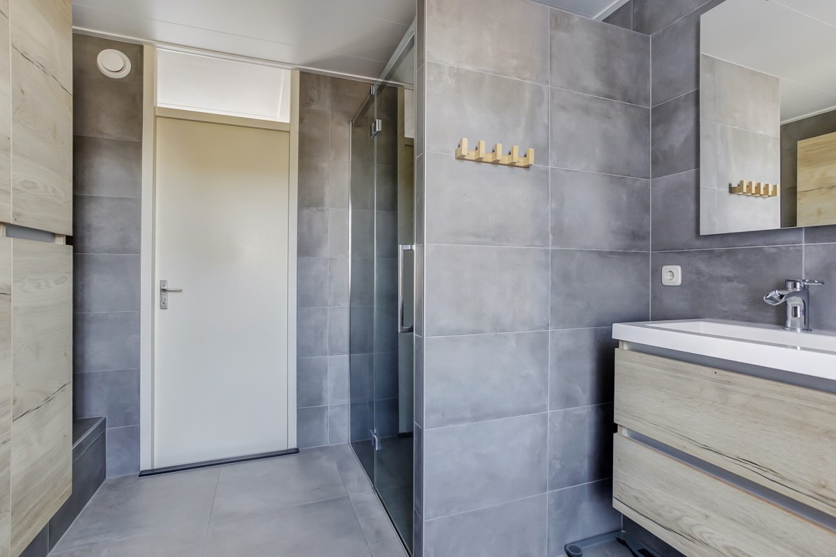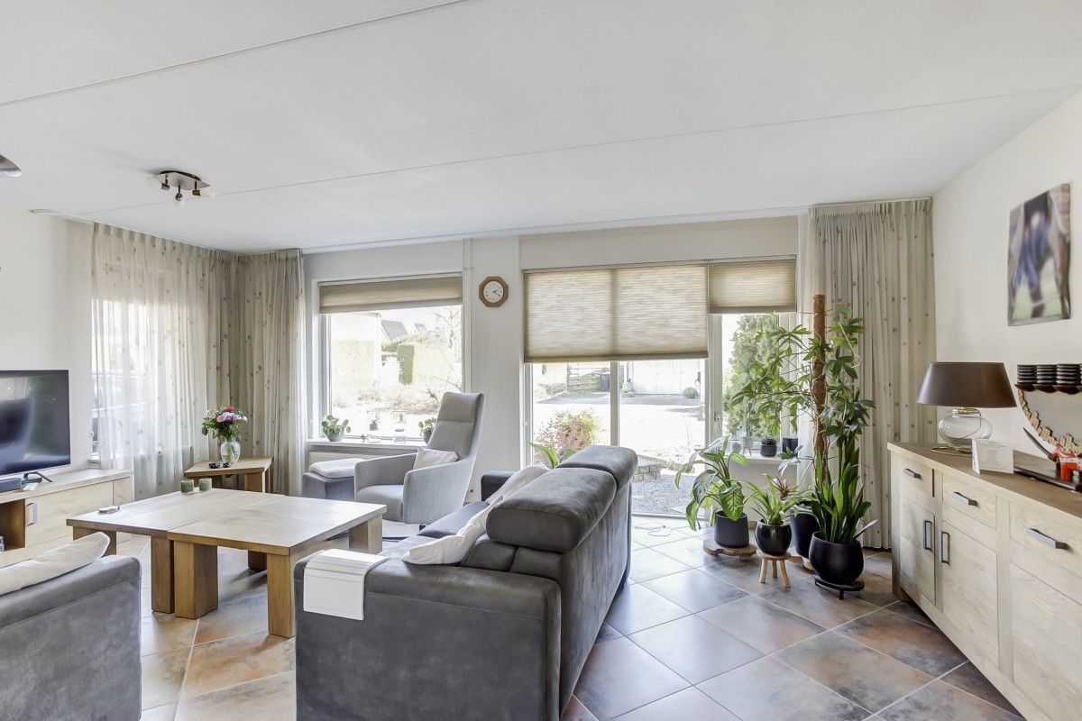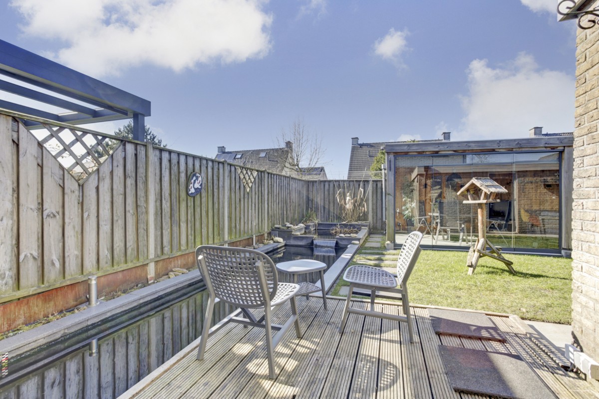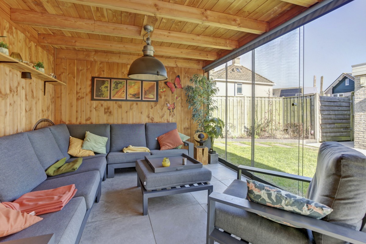 Begane grond: overdekte entree, hal met uitgebreide vernieuwde meterkast, garderobe, licht betegelde toiletruimte met hangcloset en fonteintje, trapopgang en doorgang naar de aangebouwde werkkamer op de begane grond. De straatgerichte woonkamer is voorzien van een moderne tegelvloer met vloerverwarming. Aan de achterzijde is een ruime eethoek met uitzicht op de tuin gesitueerd. Aansluitend is de vernieuwde moderne keuken in een hoek opgesteld. De keuken beschikt over korflades, een groot werkblad en een ingebouwde koelkast, vaatwasser, stoomoven, Quooker en inductiekookplaat met afzuiging. De aangrenzende bijkeuken is eveneens voorzien van een extra gedeelte van de keuken waar een extra koelkast met vrieskast ingebouwd zijn. In de bijkeuken is ook de wasmachine opgesteld. Binnendoor is de aangebouwde fietsenberging bereikbaar. Vanuit de bijkeuken en berging is de achtertuin bereikbaar. De achtertuin is mooi aangelegd en voorzien van een diepe heldere vijver met filtersysteem alsmede een grote vrijstaande houten schuur met overkapping. Middels glazen schuifdeuren is de overkapping afsluitbaar als een heuse winterkamer.
