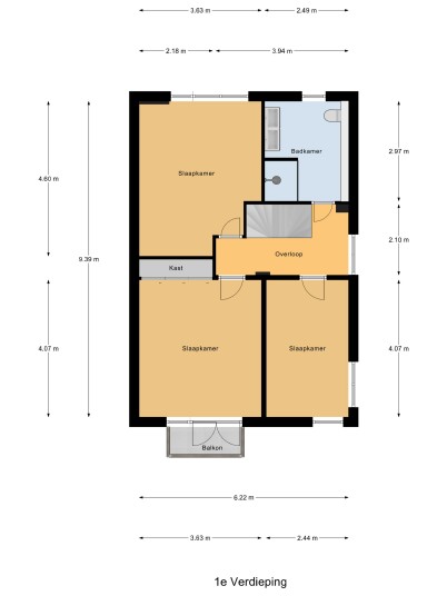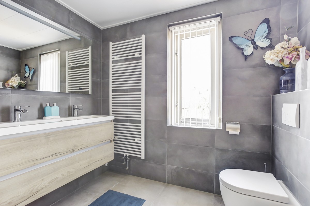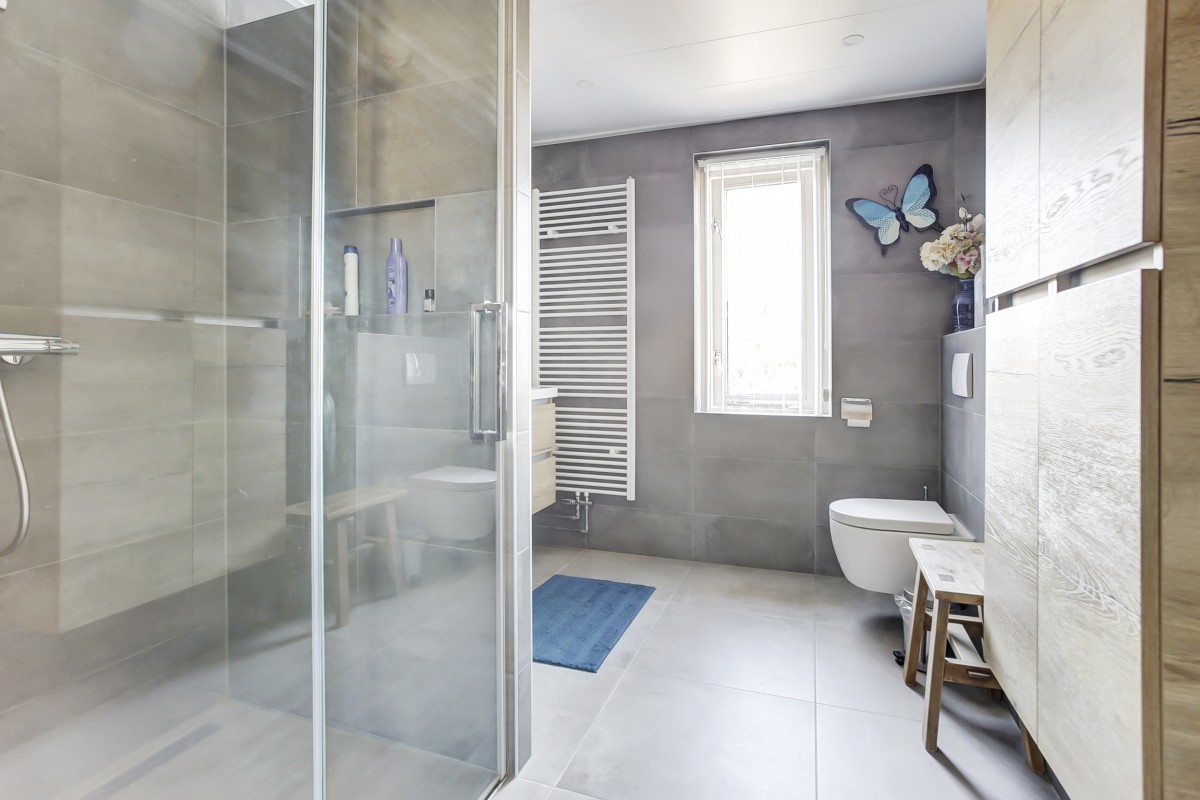 Eerste verdieping: overloop met aansluitend 3 mooie slaapkamer en de vernieuwde badkamer. De slaapkamer aan de voorzijde heeft toegang tot het balkon. De overloop en slaapkamer zijn allen voorzien van vloerbedekking. De luxe badkamer biedt een ruime inloopdouche, 2e hangcloset en meubel met dubbele wastafel en spiegel.