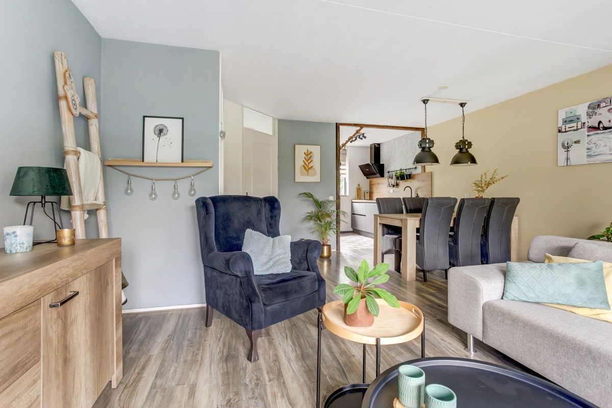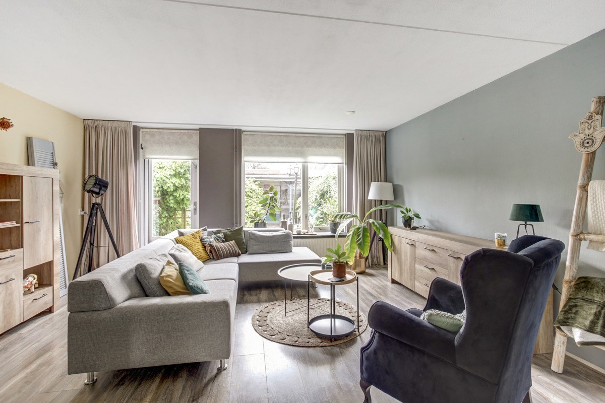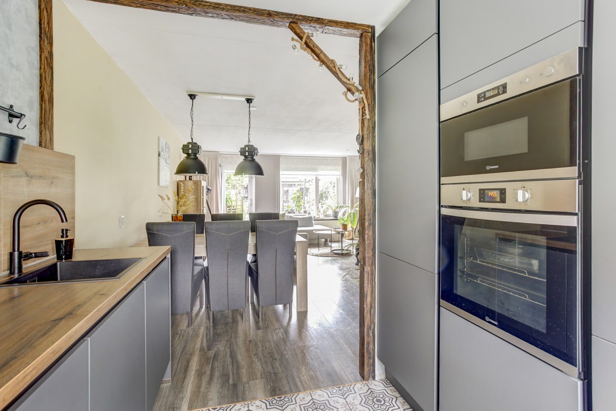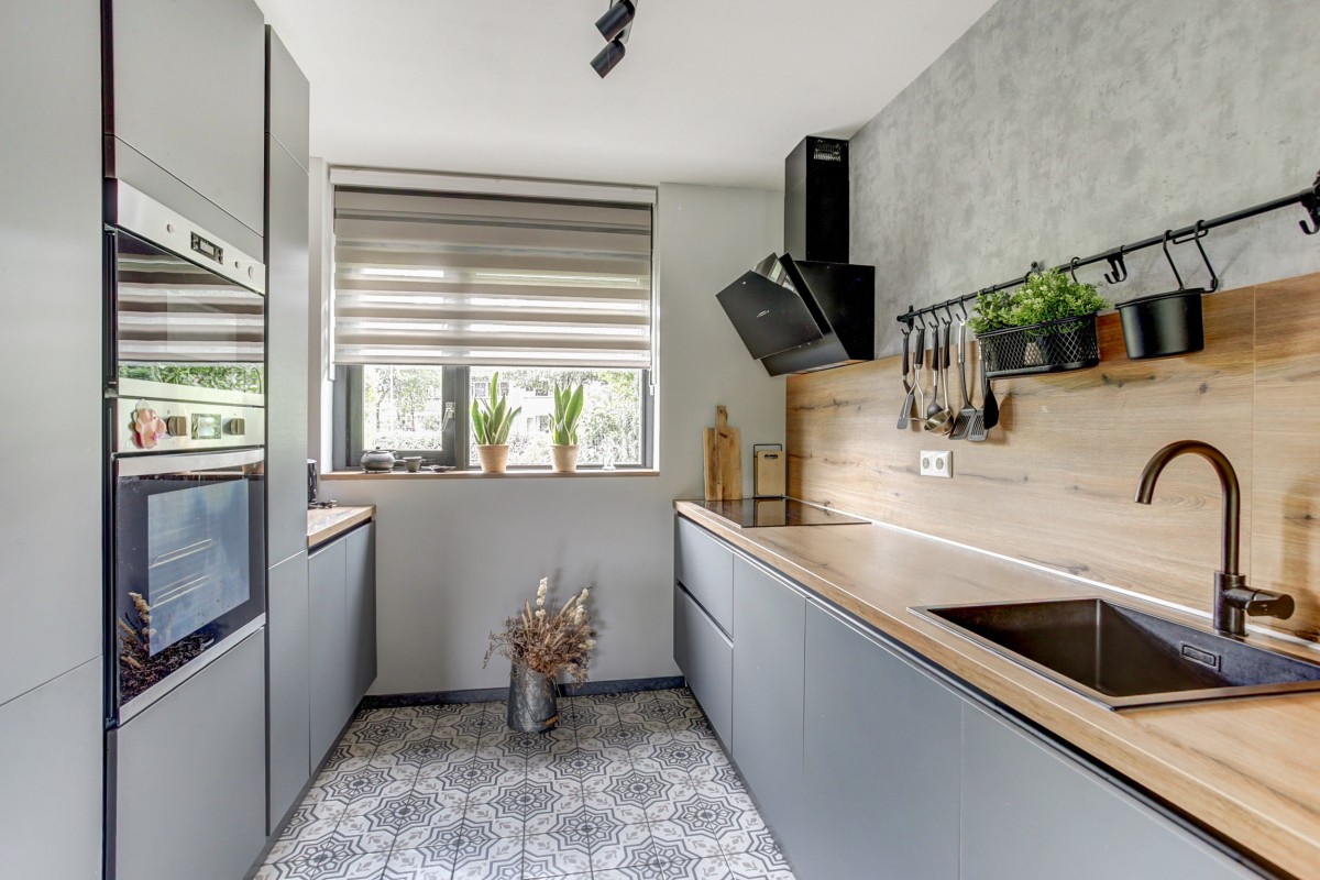 Lees verderDe woonkamer is tuingericht en voorzien van een praktische trapkast en een mooie laminaatvloer. De luxe keuken (2021) is straatgericht en in een dubbele lengte opstelling geplaatst. De moderne keuken is uitgevoerd in een grijze tint met houtlook werkbladen en voorzien van een ingebouwde combimagnetron, koelkast, vrieskast, vaatwasser, 5-pits inductiekookplaat, zwarte rvs afzuigschouw en biedt veel ruimte door onder andere een grote apothekerskast.