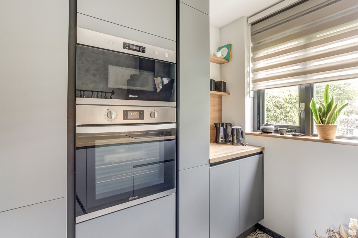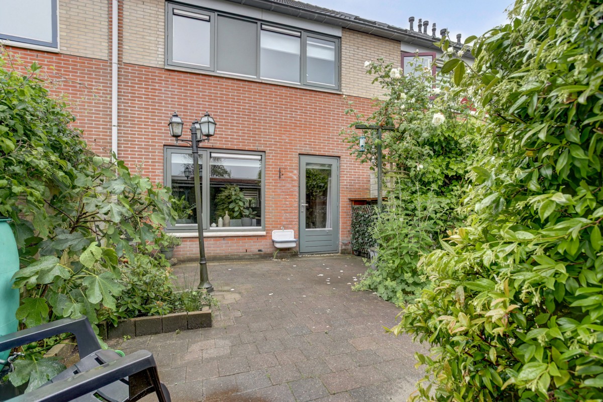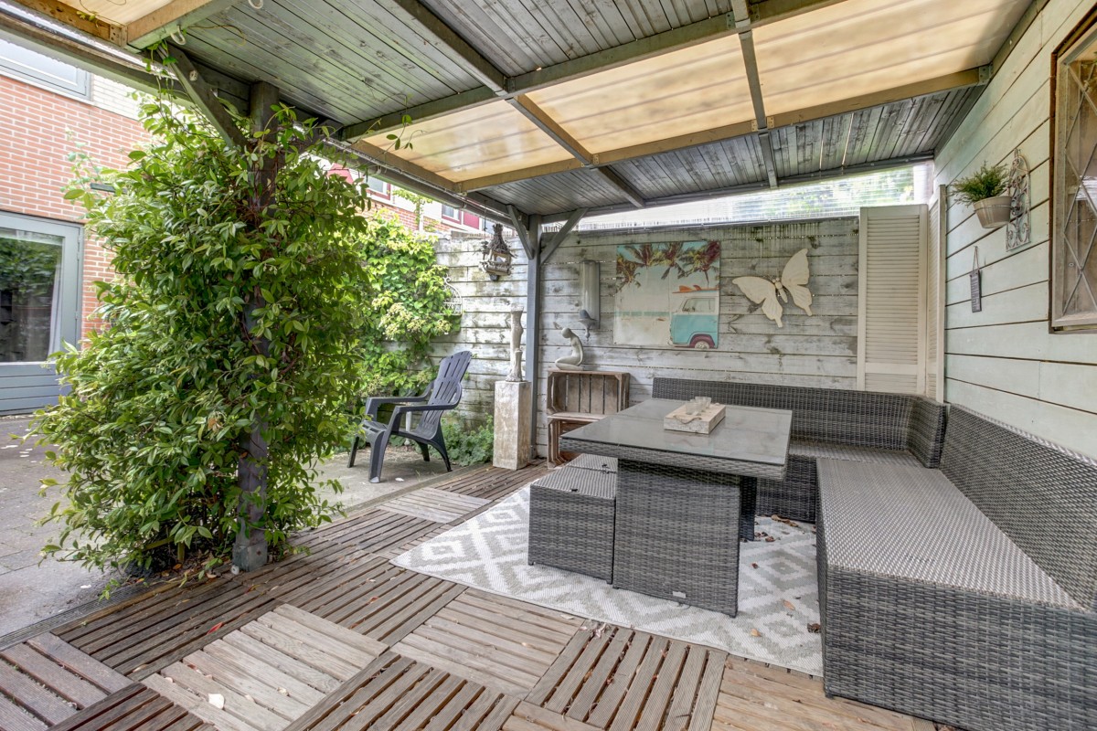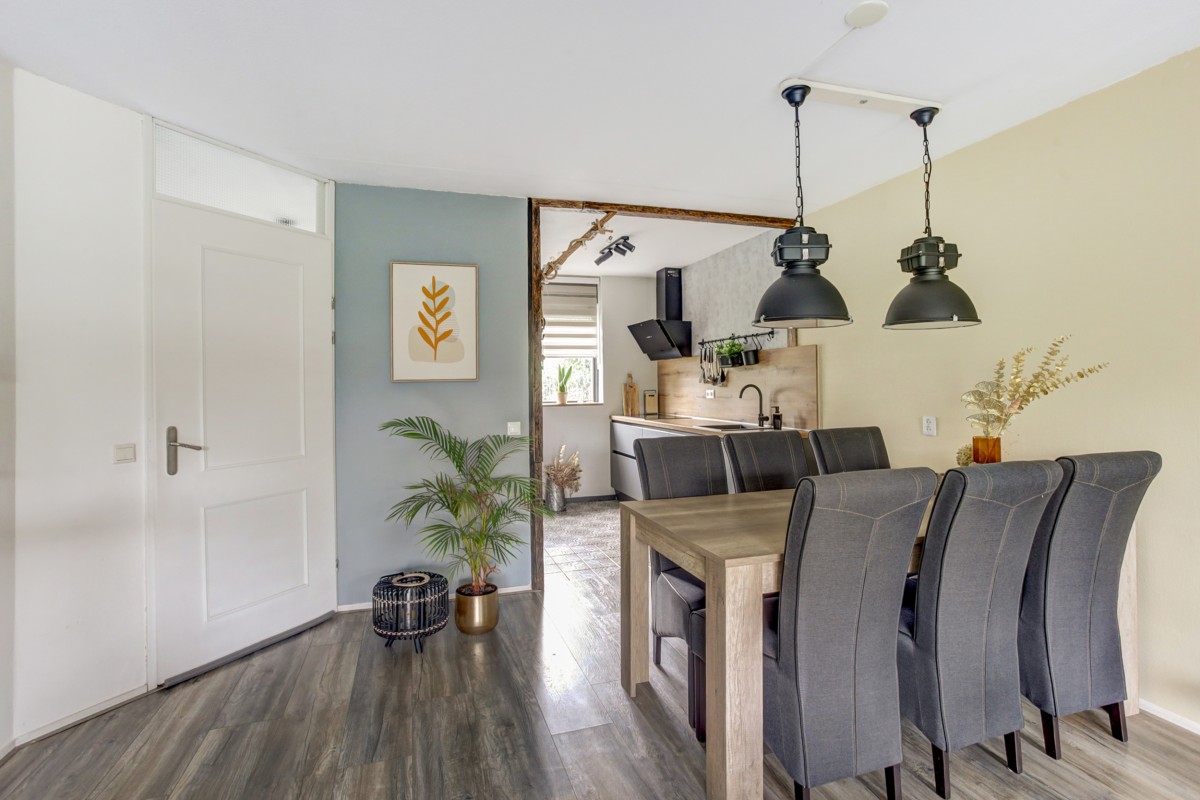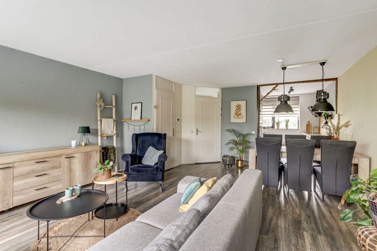 Lees verderDe woonkamer is tuingericht en voorzien van een praktische trapkast en een mooie laminaatvloer. De luxe keuken (2021) is straatgericht en in een dubbele lengte opstelling geplaatst. De moderne keuken is uitgevoerd in een grijze tint met houtlook werkbladen en voorzien van een ingebouwde combimagnetron, koelkast, vrieskast, vaatwasser, 5-pits inductiekookplaat, zwarte rvs afzuigschouw en biedt veel ruimte door onder andere een grote apothekerskast.