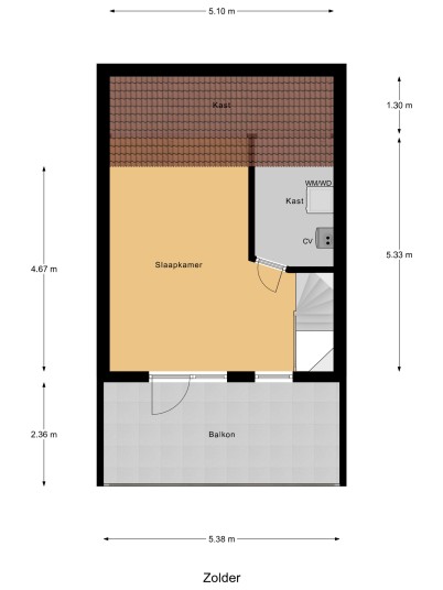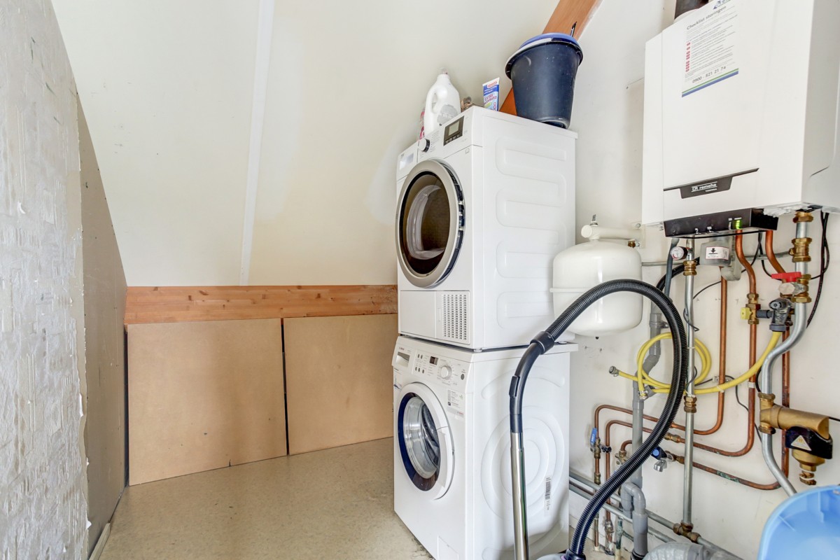 Tweede verdieping: middels een vaste trap te bereiken zolder. Hier is een ruime zolderkamer met toegang tot het dakterras en aansluitend is een bergruimte met de opstelplaats voor de wasmachine en droger opstelling gemaakt. In deze berging is tevens de opstelplaats voor de c.v.-ketel (Remeha Tzerra 2015) en mechanische ventilatie-unit aanwezig. Aan de voorzijde is een groot dakterras aanwezig welke zeer gunstig op het zuiden is gelegen.
