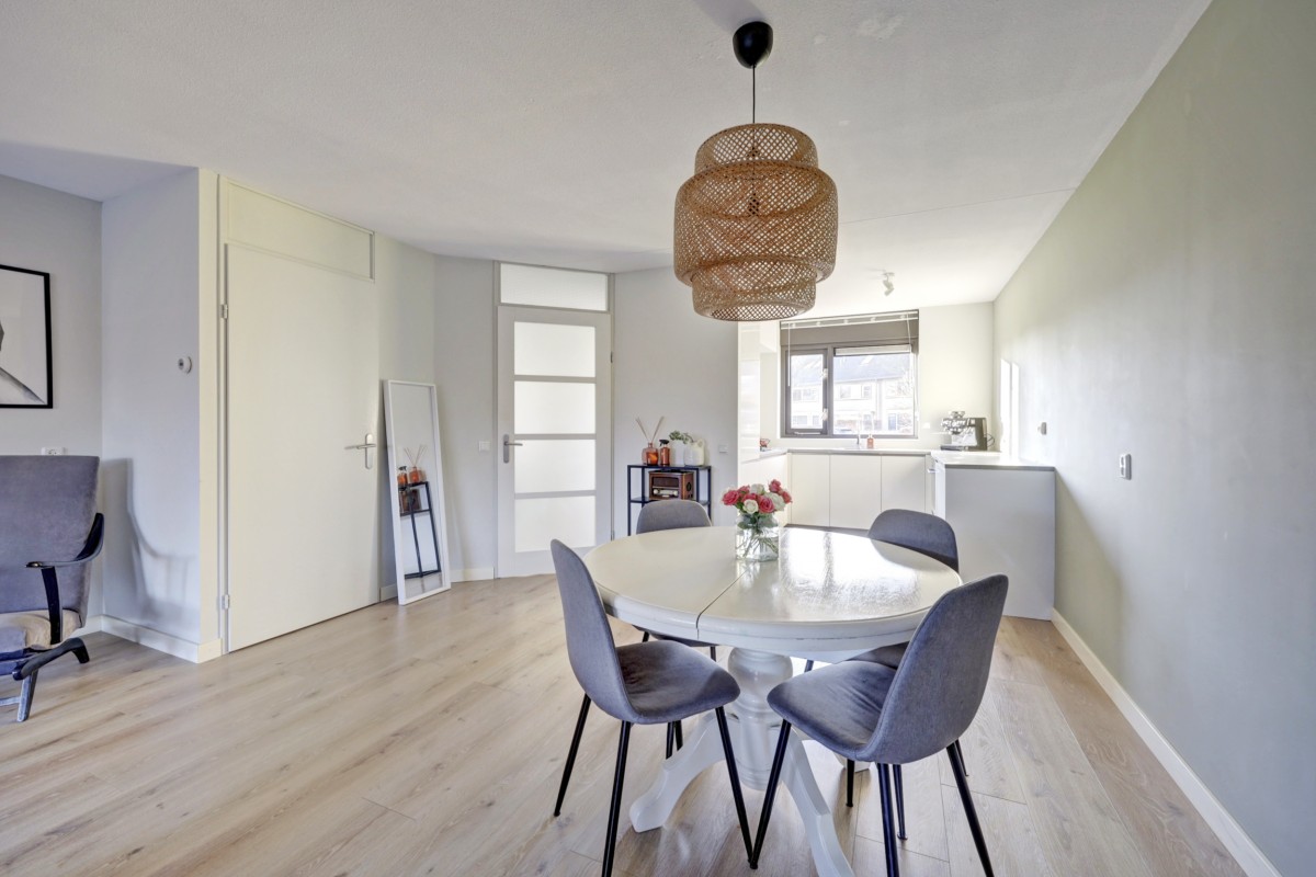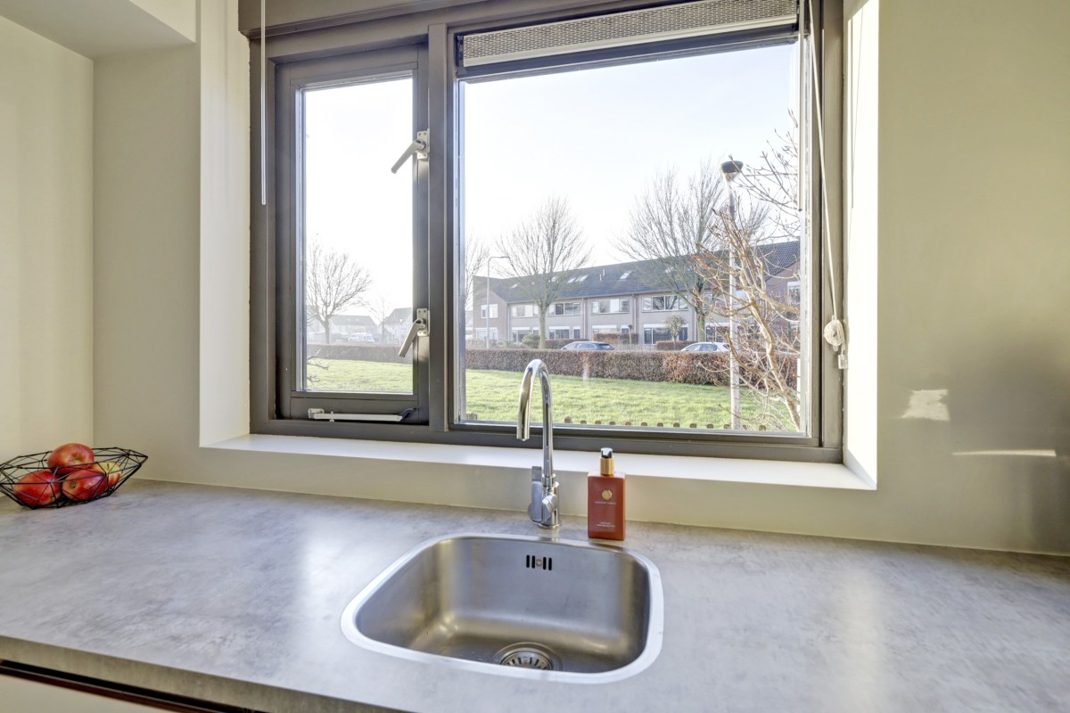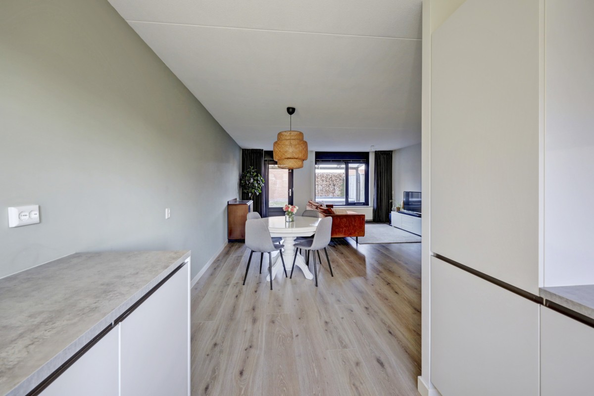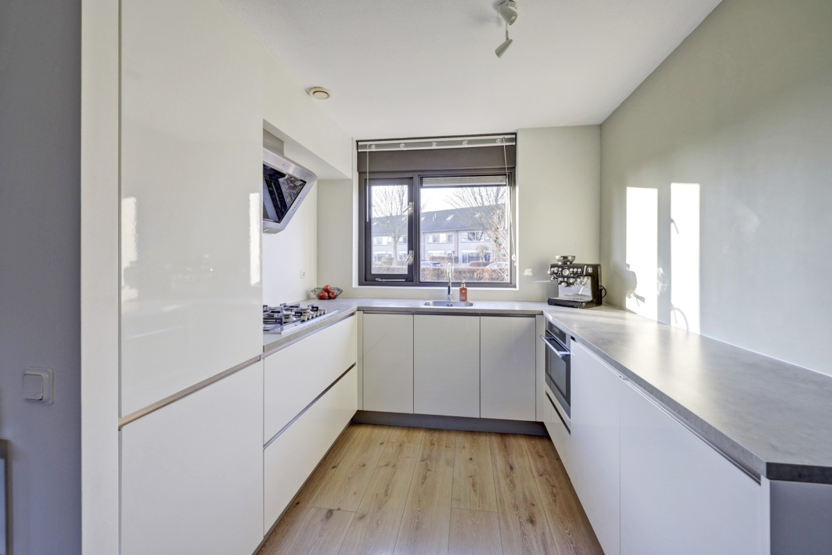 Lees verderDe woonkamer is tuingericht en voorzien van een praktische trapkast en een mooie laminaatvloer (2019). De nieuwe lichte keuken (2019) is straatgericht en in een 'U-vorm' opgesteld. De keuken is voorzien van een ingebouwde combi-oven, koelkast, vrieskast, vaatwasser, 5-pits gaskookplaat en RVS afzuigschouw. In 2019 is de gehele begane grond voorzien van nieuw stucwerk.