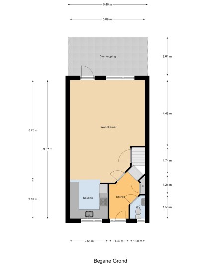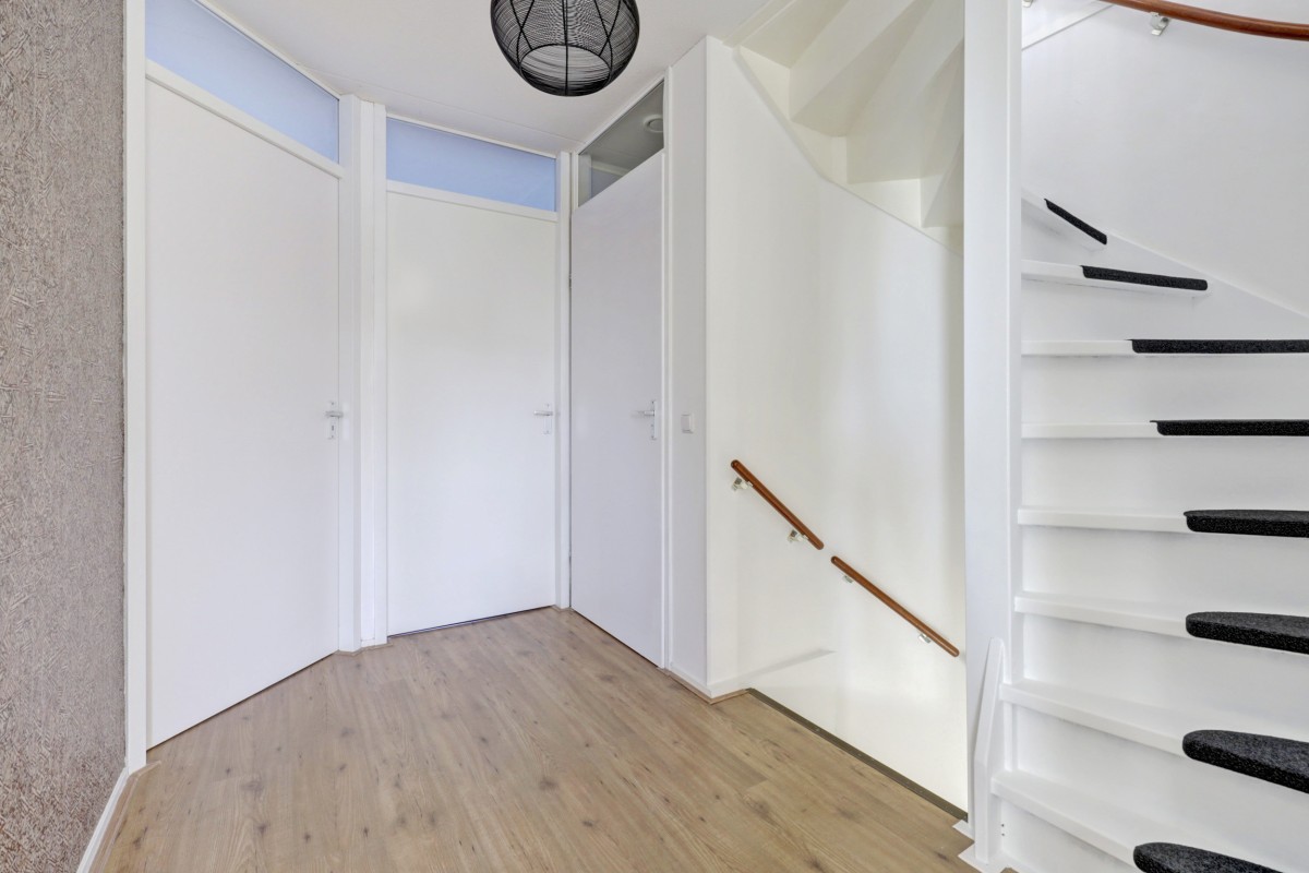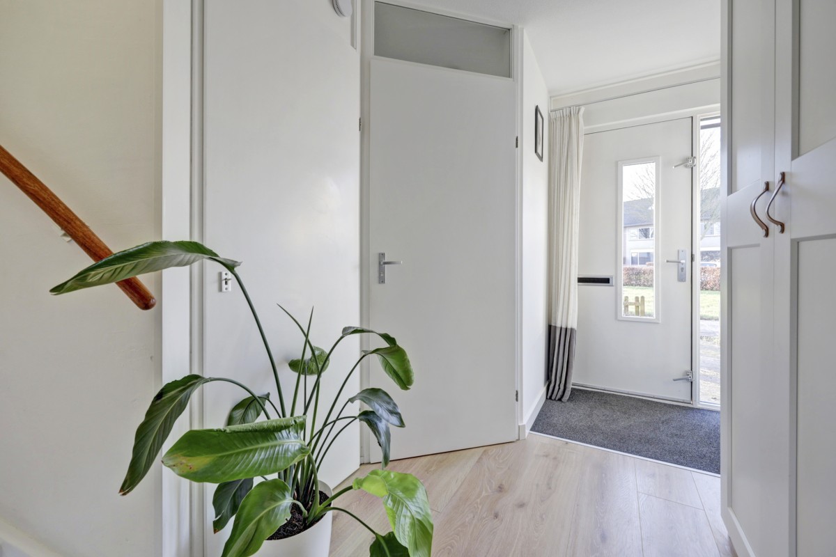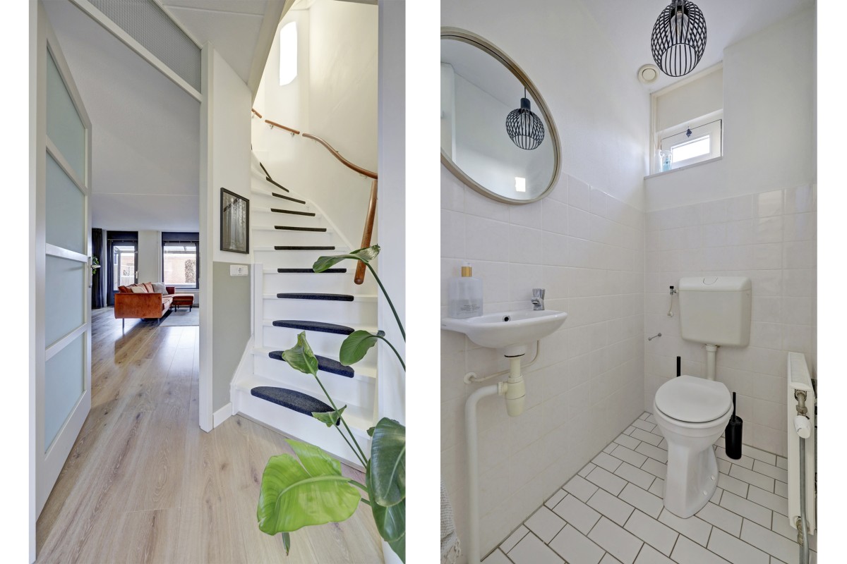 Begane grond: entree, hal met meterkast, lichte toiletruimte met toilet, wastafeltje en radiator, trapopgang en doorgang naar de woonkamer.