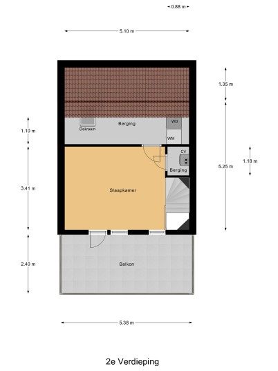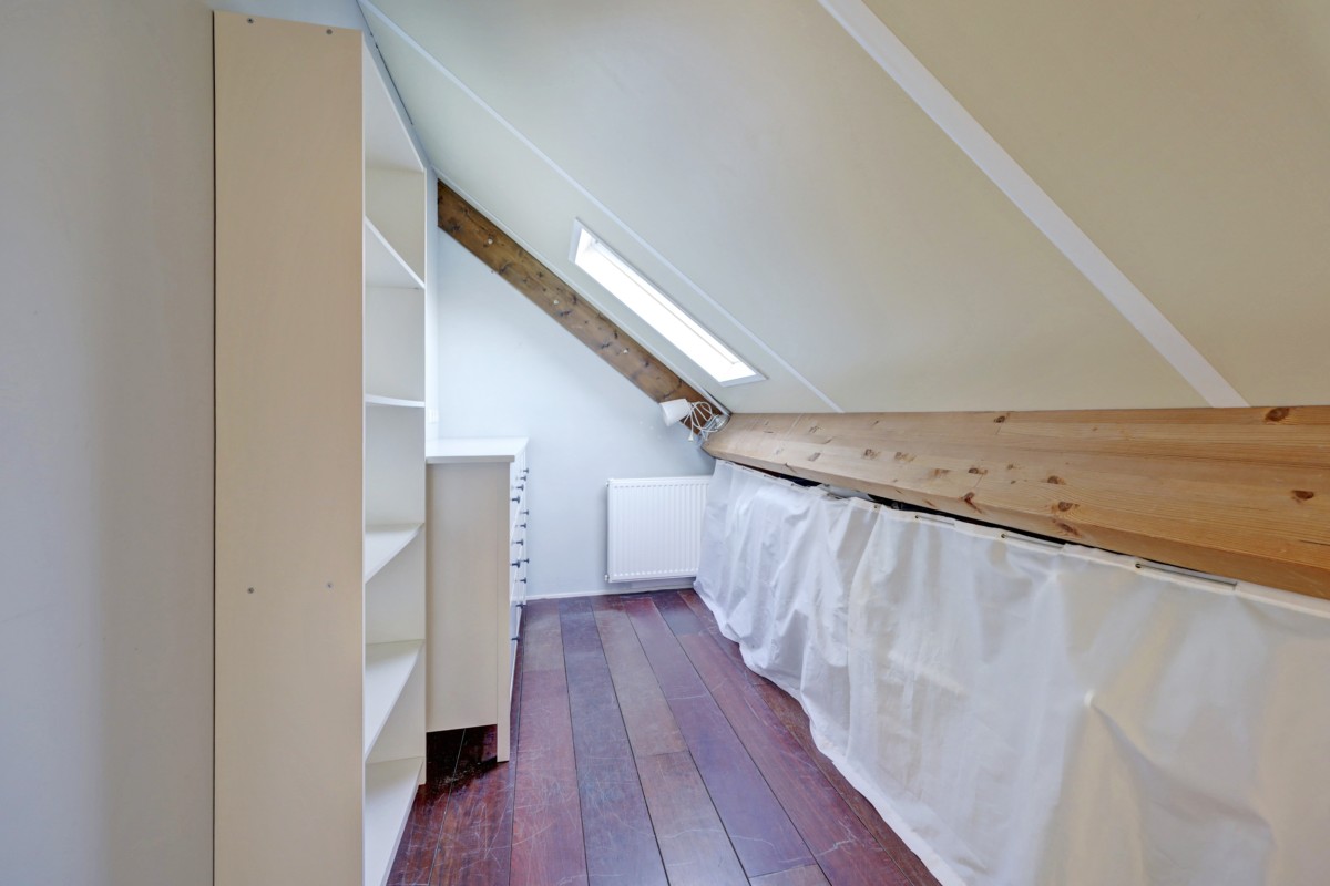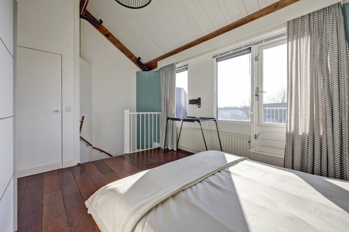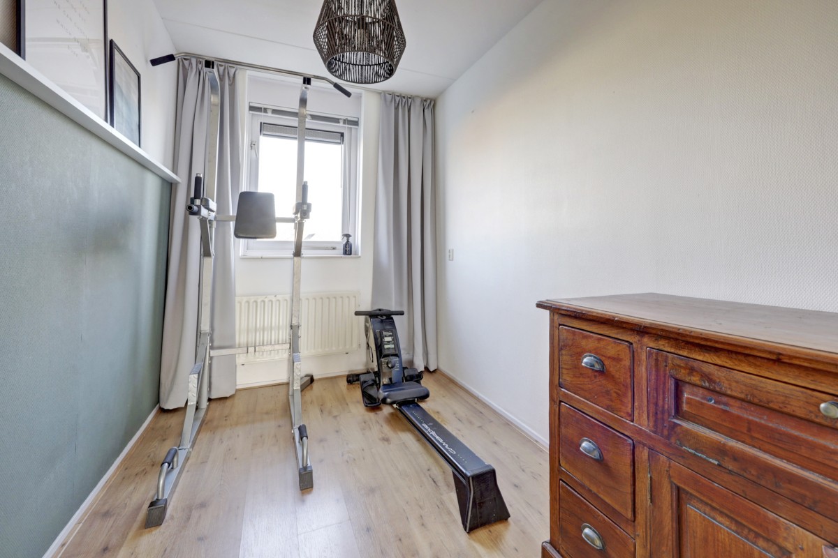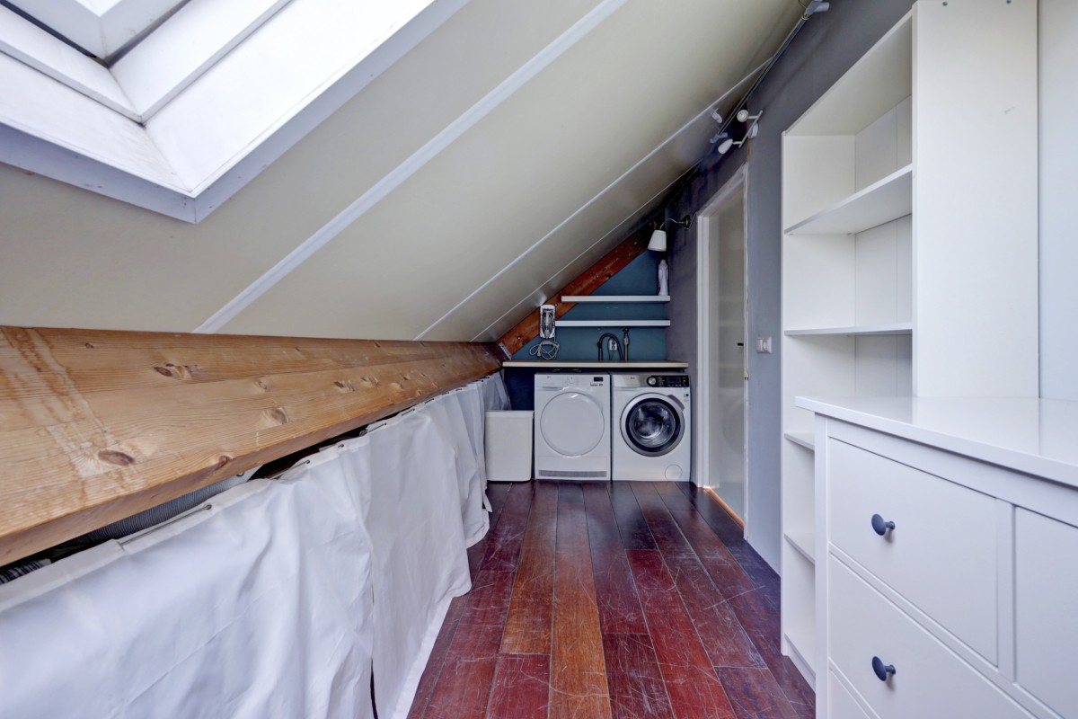Tweede verdieping: middels een vaste trap te bereiken zolder. Deze ruimte is als 4e slaapkamer in gebruik. Aansluitend is een bergruimte met dakraam en wasmachine en droger opstelling gemaakt. Op deze verdieping is tevens de opstelplaats voor de c.v.-ketel (Vaillant HR 2005) en mechanische ventilatie-unit aanwezig. Aan de voorzijde is een groot dakterras aanwezig. Deze is op het zuiden gelegen en vanuit de aanwezige slaapkamer bereikbaar.