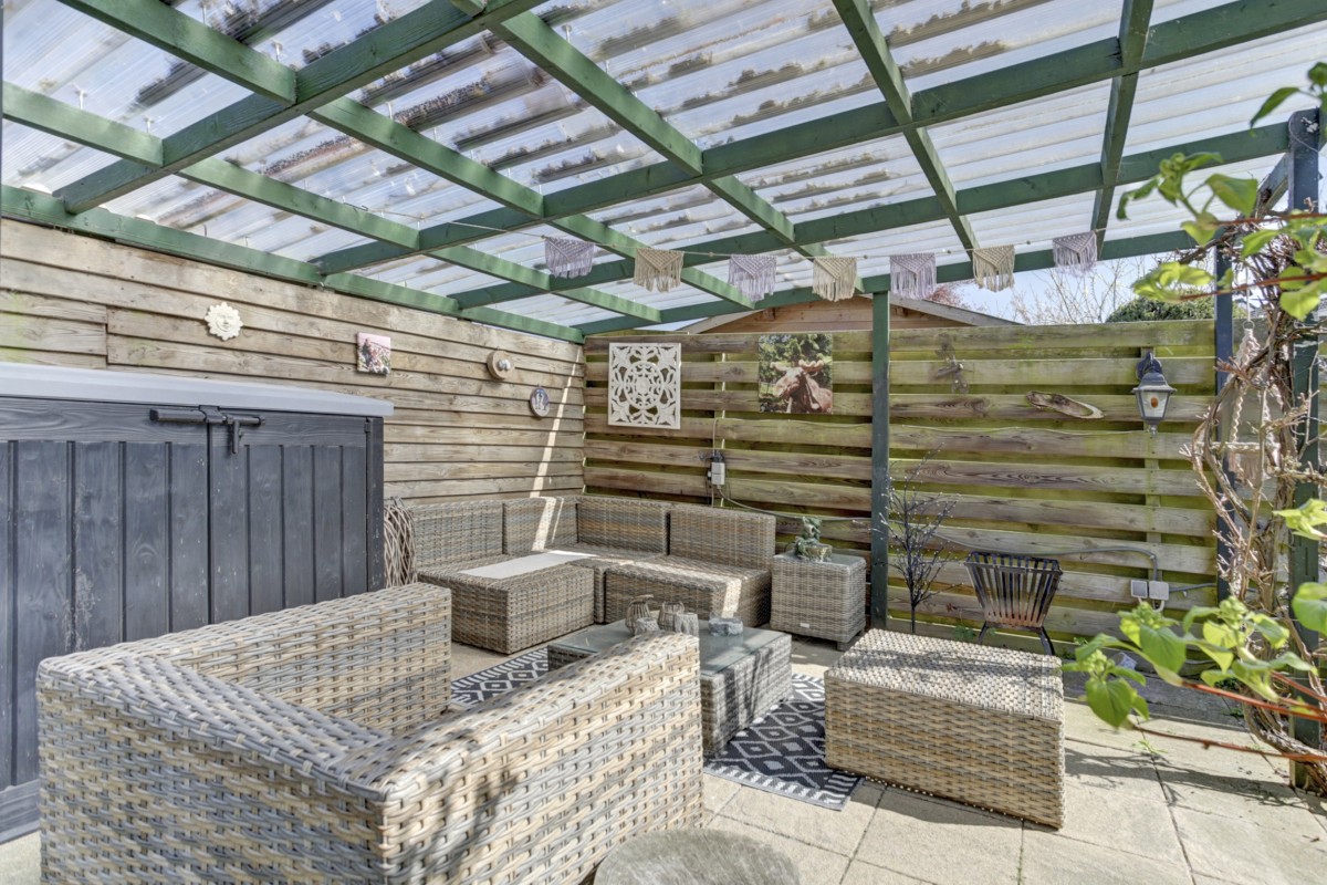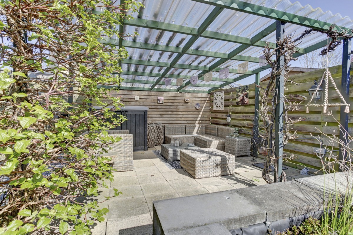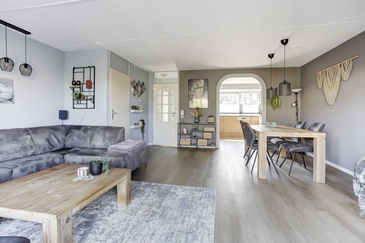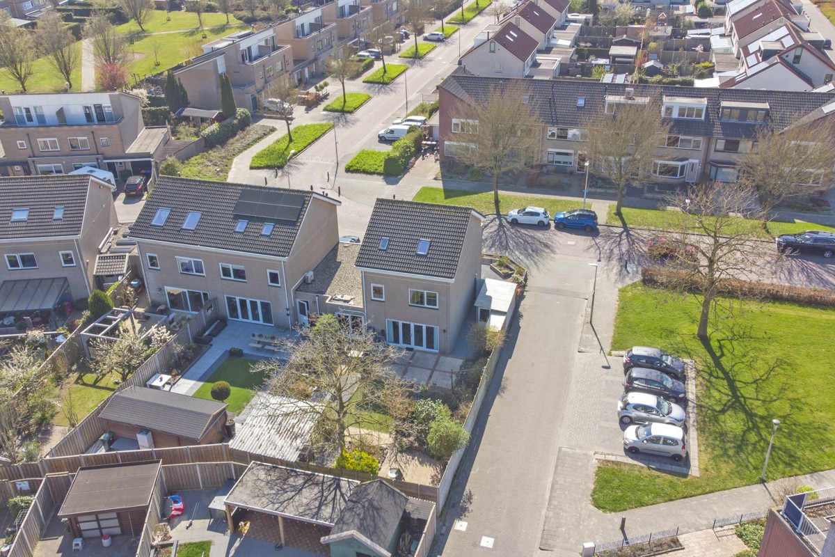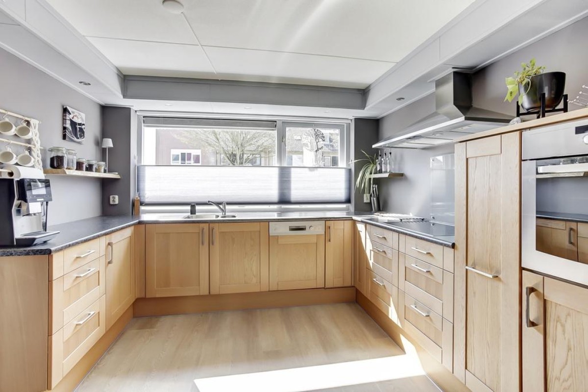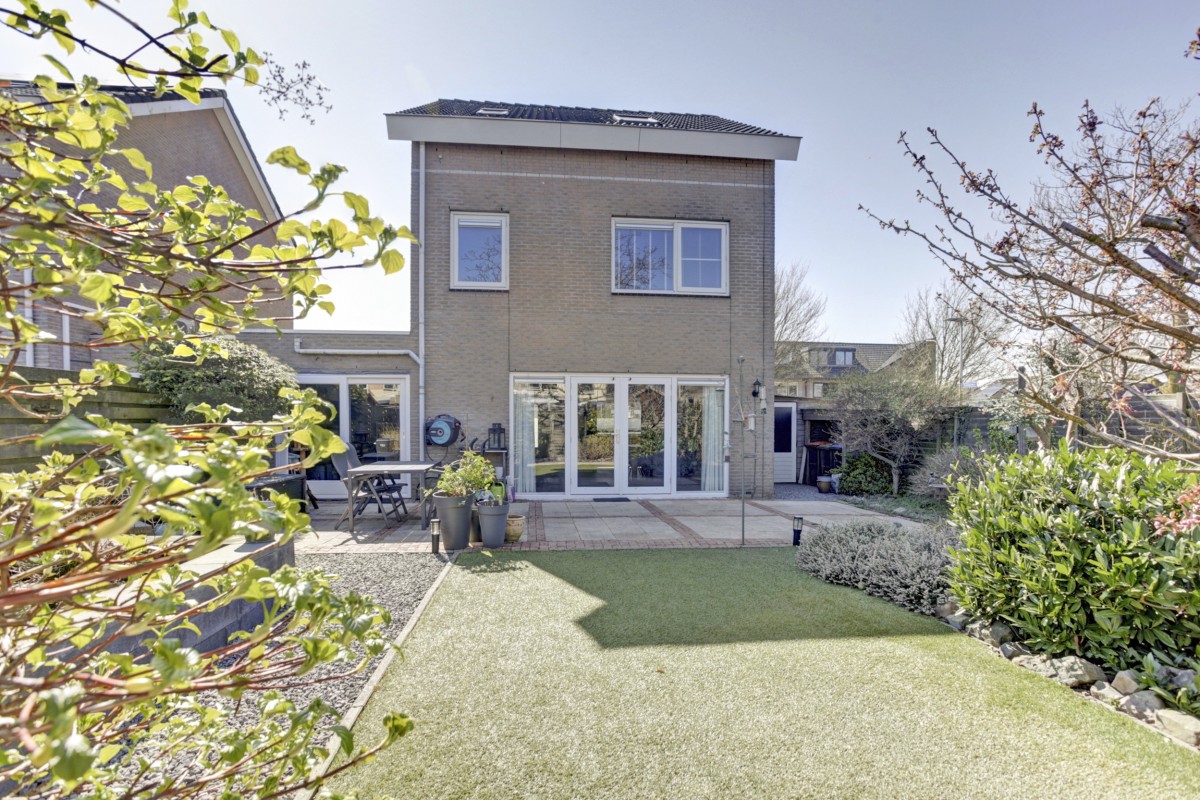 Begane grond: ruime oprit met aangebouwde berging en overdekt entree, hal met garderobe, toiletruimte met hangcloset en fonteintje, uitgebreide meterkast en loopdeur naar de berging waar tevens de wasmachine en droger staan opgesteld. Deze binnendoor bereikbare berging biedt ruimte voor o.a. de fietsen en heeft aan de achterzijde een doorloop naar een prachtige multifunctionele kamer met een schuifpui naar de achtertuin. Vanuit de hal is tevens de tuingerichte woonkamer bereikbaar welke beschikt over een mooie moderne PVC-vloer met vloerverwarming en openslaande deuren naar de achtertuin. Aan de voorzijde van de woning is een ruime hoek opgestelde keuken gesitueerd welke voorzien is van veel kastruimte, een groot werkblad en een ingebouwde vaatwasser, keramisch kookplaat met afzuigkap, combimagnetron en losse koel-/vrieskast. De tuin is bereikbaar vanuit de opslaande deuren van de woonkamer en middels een schuifpui vanuit de multifunctionele kamer. De diepe en brede achtertuin heeft een zonneterras tegen de achtergevel en een groot zoneterras achter in de tuin. De tuin is tevens langs de woning bereikbaar en voorzien van een extra berging naast de woning.