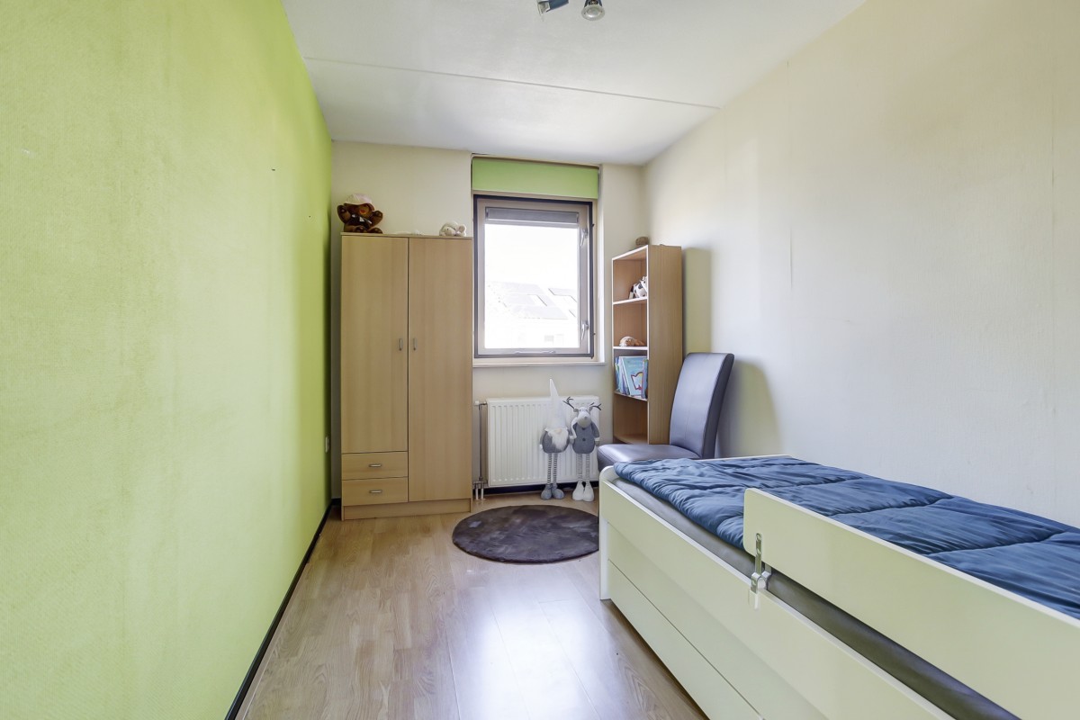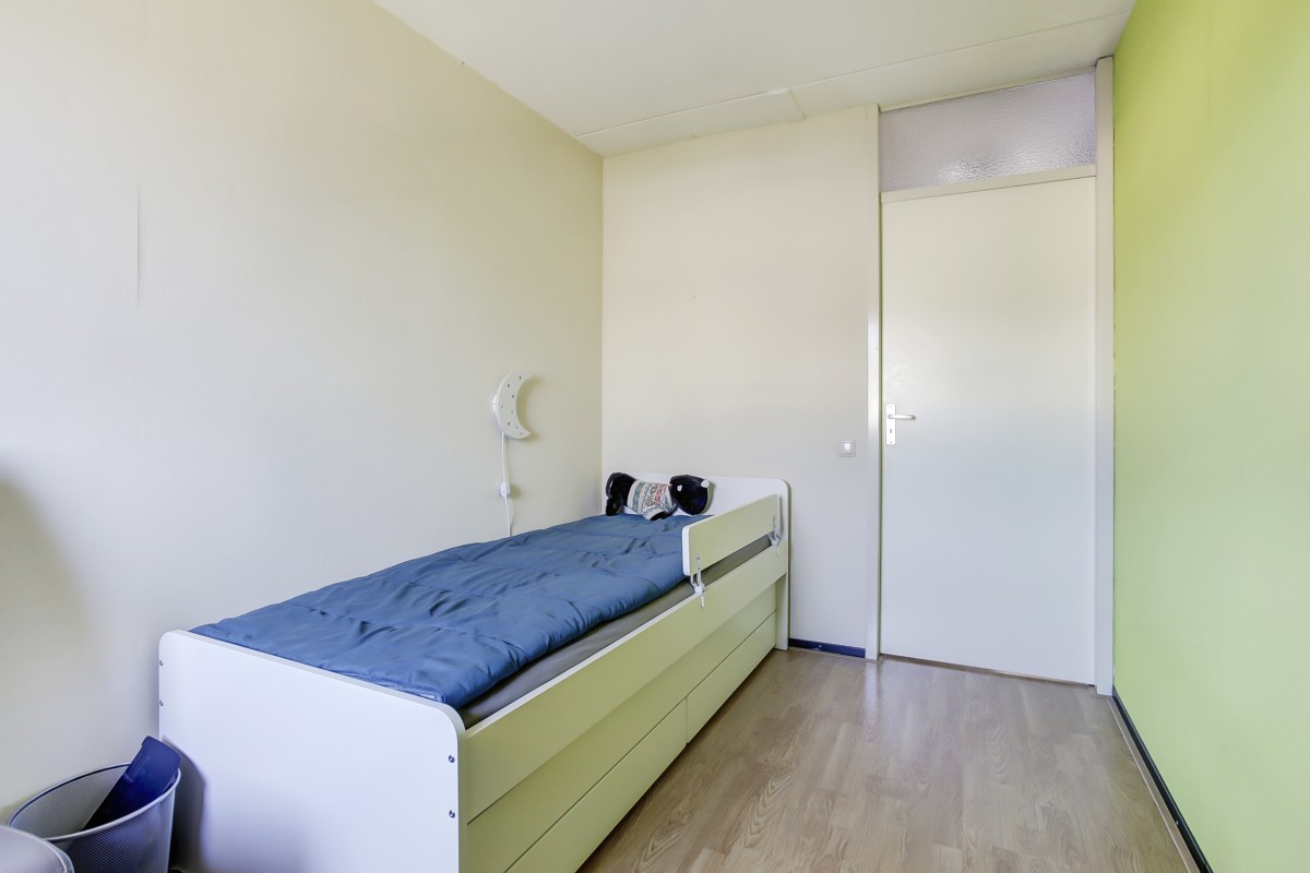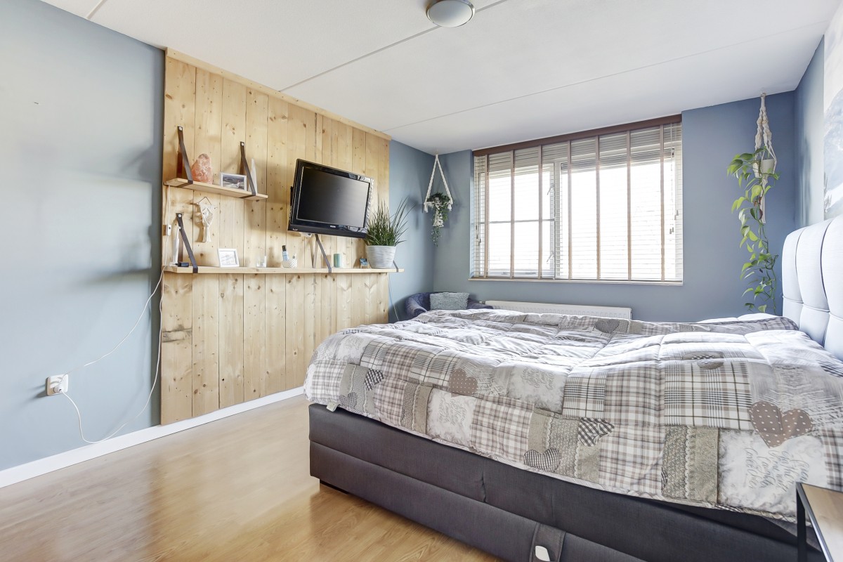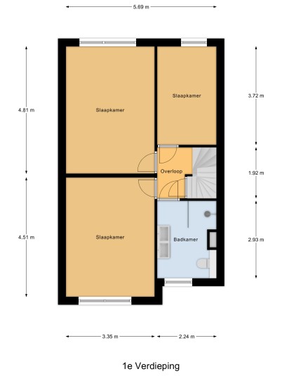 Eerste verdieping: vaste trap naar de overloop met aansluitend een drie slaapkamers en de badkamer. De slaapkamers hebben allen een mooie maatvoering en beschikken net als de overloop over een laminaatvloer. De badkamer heeft een meubel met dubbele wastafel, 2e hangcloset en inloopdouche.