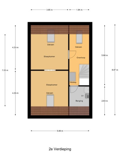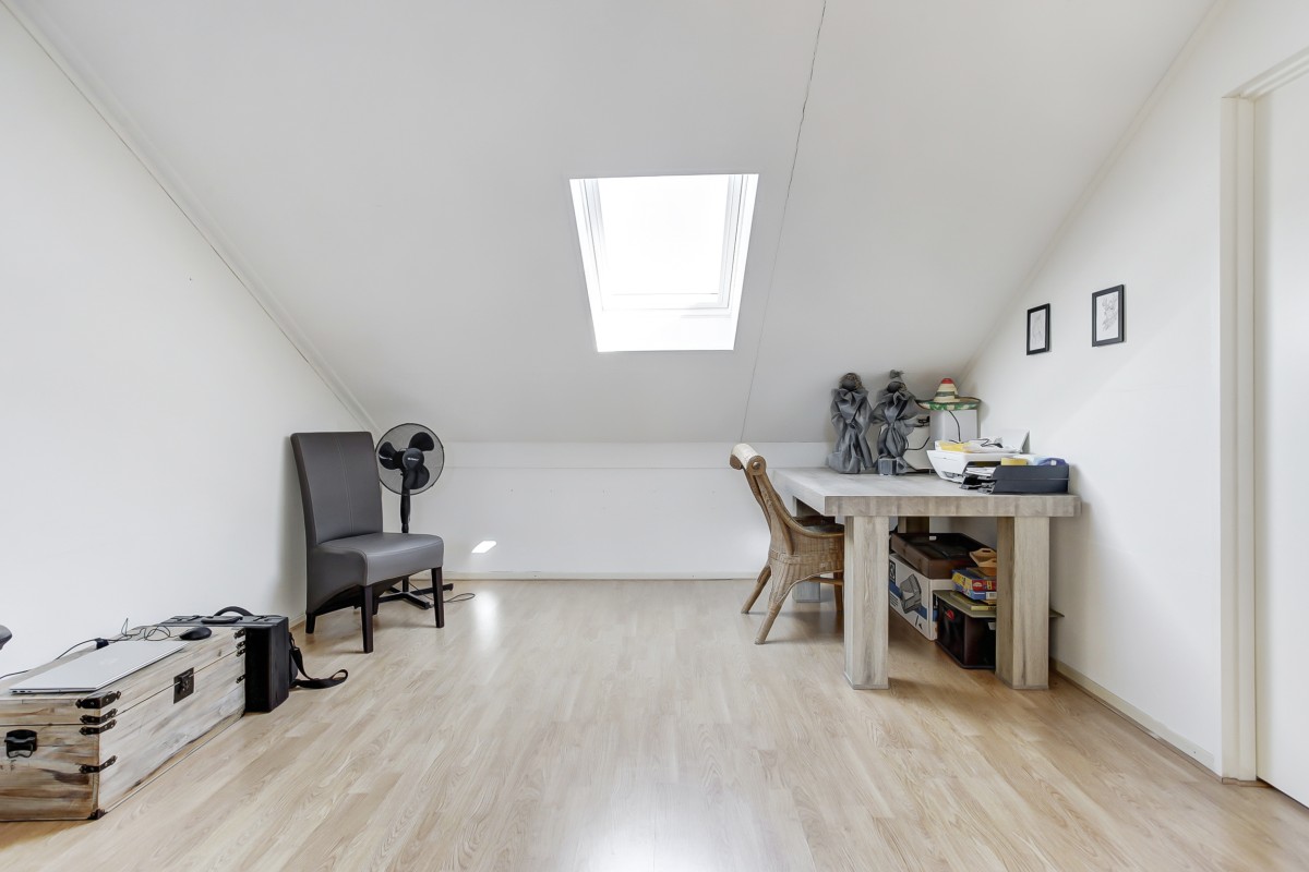 Tweede verdieping: vaste trap naar de voorzolder waar een separate bergruimte de opstelplaats voor de c.v.-ketel (Intergas HR 2020) biedt. Achter de knieschotten is ruime berging mogelijk. Deze verdieping biedt mede door de grote dakramen de mogelijkheid om van de grote 4e slaapkamer tevens een extra 5e slaapkamer te realiseren.