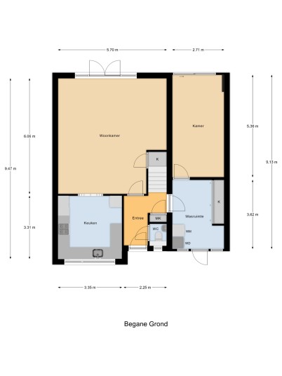 * Begane grond voorzien van PVC-vloer met vloerverwarming
