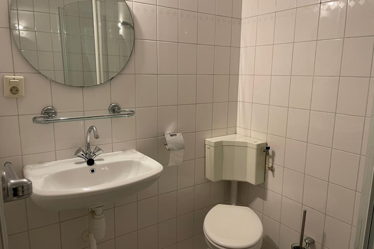 1e Verdieping: Ruime overloop, 4 slaapkamers, badkamer met douchecabine, 2e toilet en wastafel.