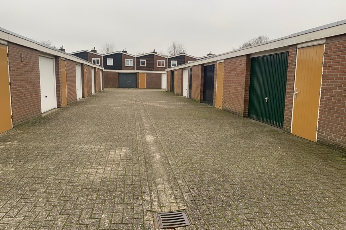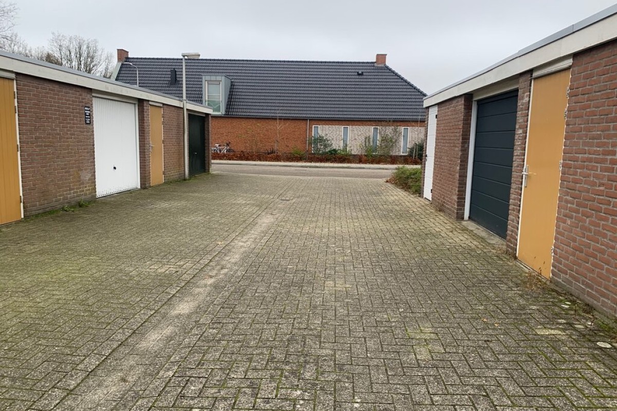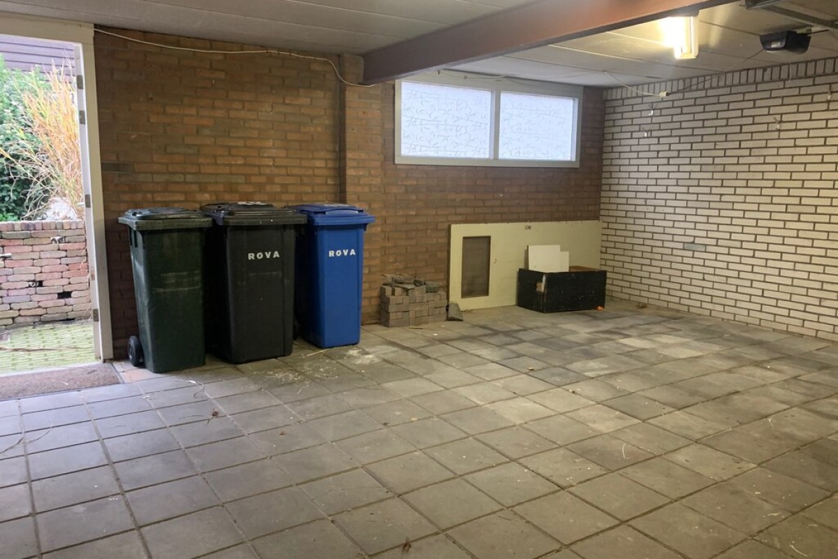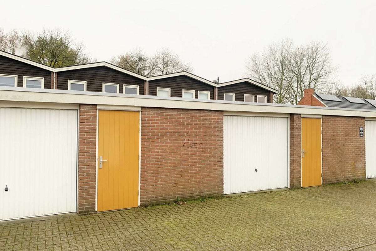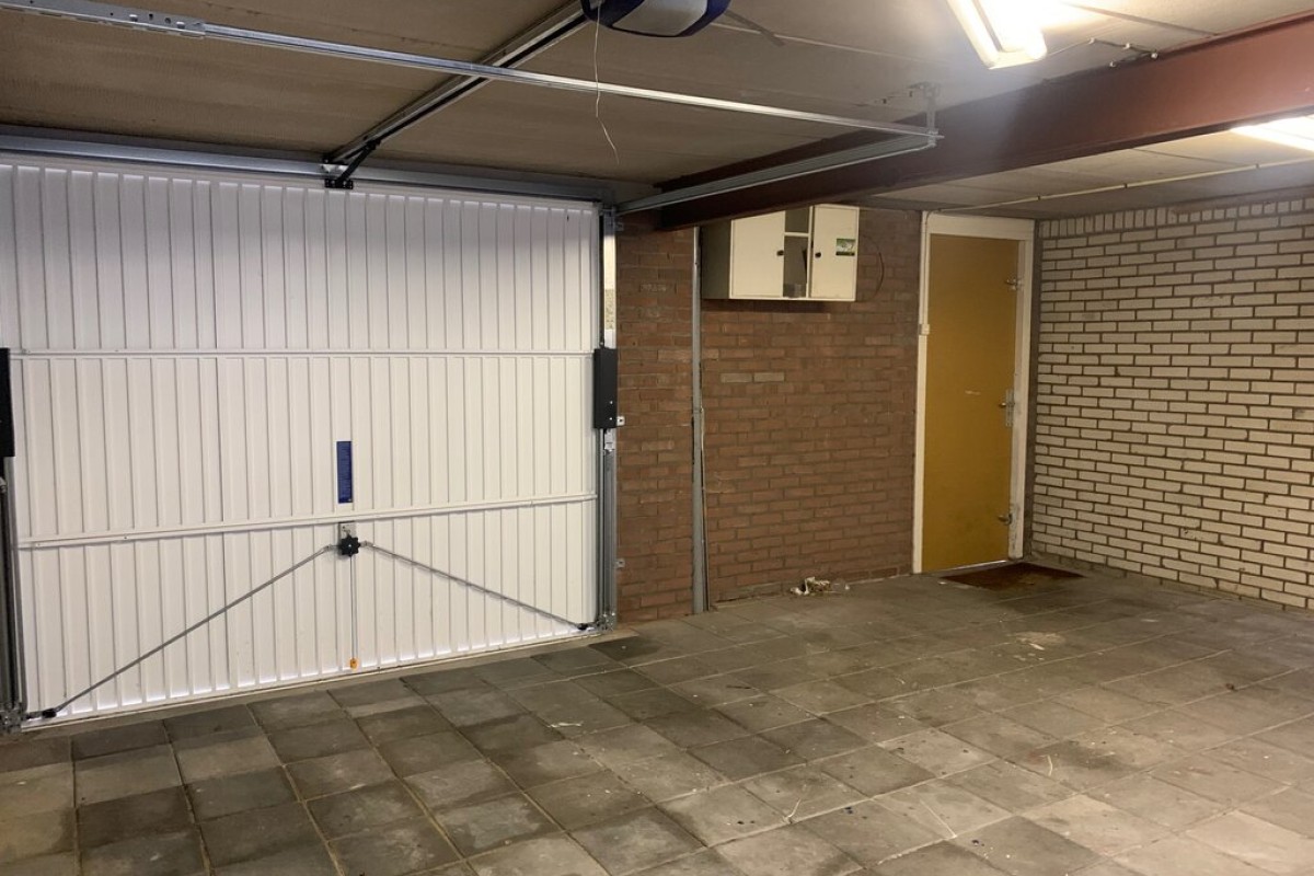 Aan de achterzijde bevindt zich een bijzonder ruime garage/berging over de gehele breedte met een elektrische stalen kanteldeur alsmede een separate loopdeur.