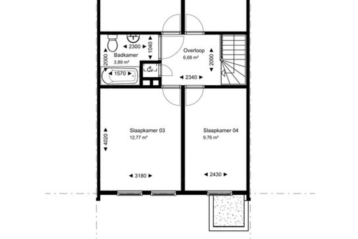 1e Verdieping: Ruime overloop, 4 slaapkamers, badkamer met douchecabine, 2e toilet en wastafel.