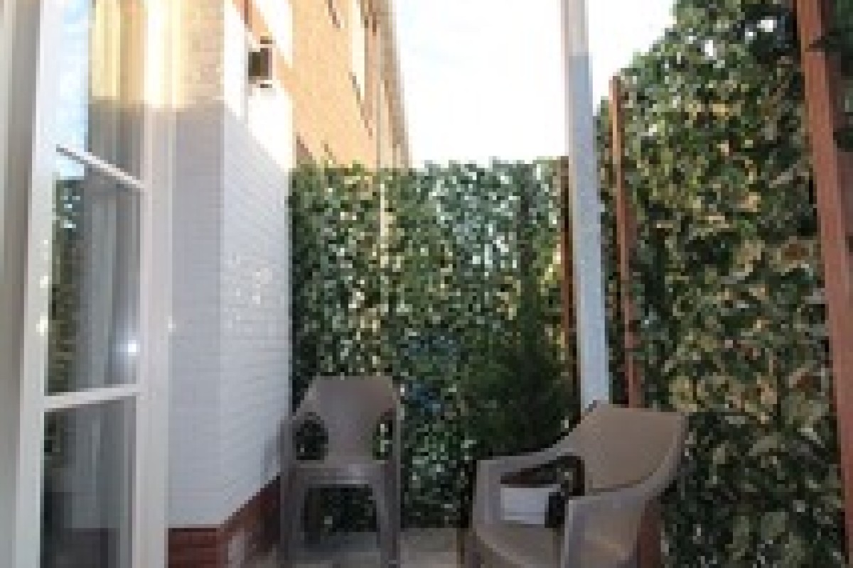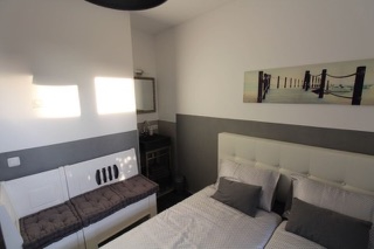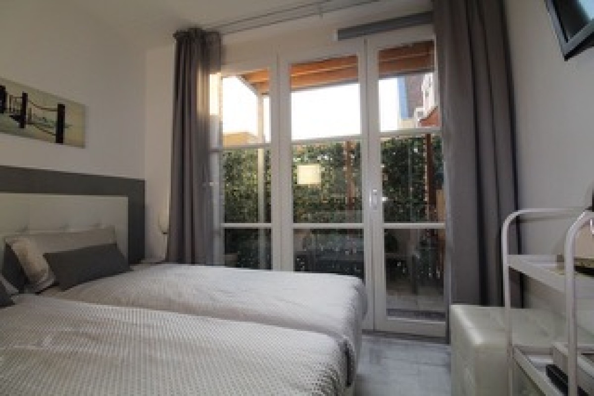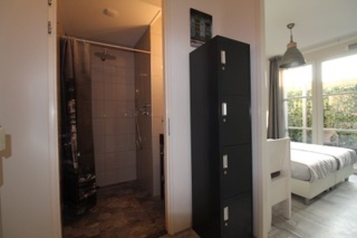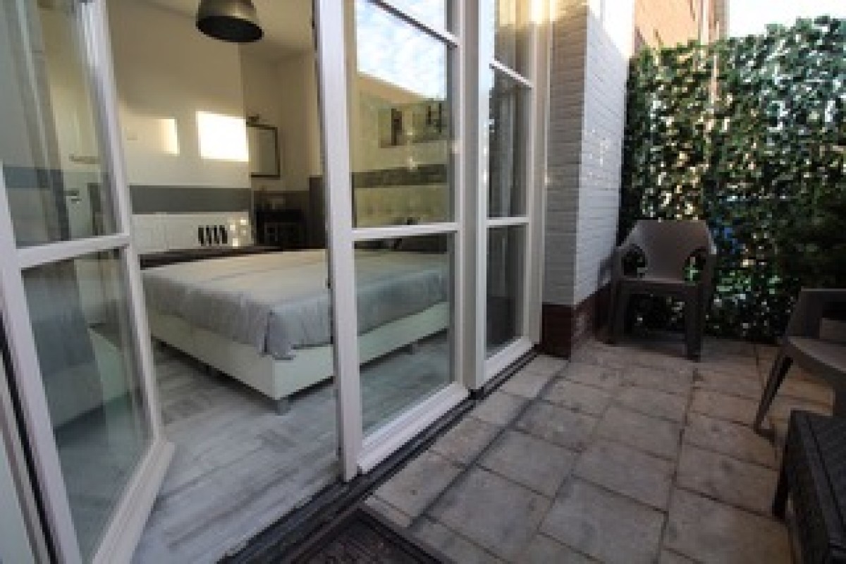 De slaapkamer is gesitueerd aan de achterzijde met aansluitend een eigen terras over de volledige breedte van de slaapkamer, ca.3,30 m.