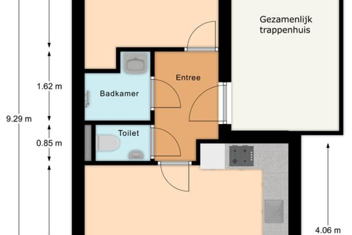 Het betreft een netjes afgewerkt 2-kamer appartement op de begane grond. Dit appartement heeft een eigen terras aan de achterzijde een nette luxe open keuken met inbouwapparatuur. Vanuit de woonkamer zijn er twee openslaande deuren aan de voorzijde aanwezig. In de hal is een apart toilet aanwezig en een badkamer met douche en wastafel.