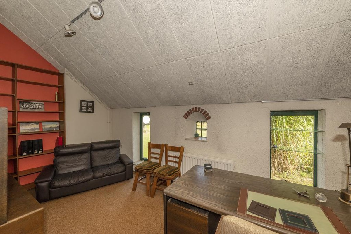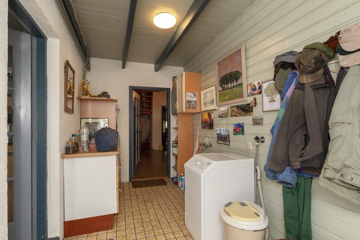 Vanuit de entree hal kunt ook het bijgebouw betreden welke als gastenverblijf, atelierruimte en of slaapkamer in gebruik kan worden genomen.
