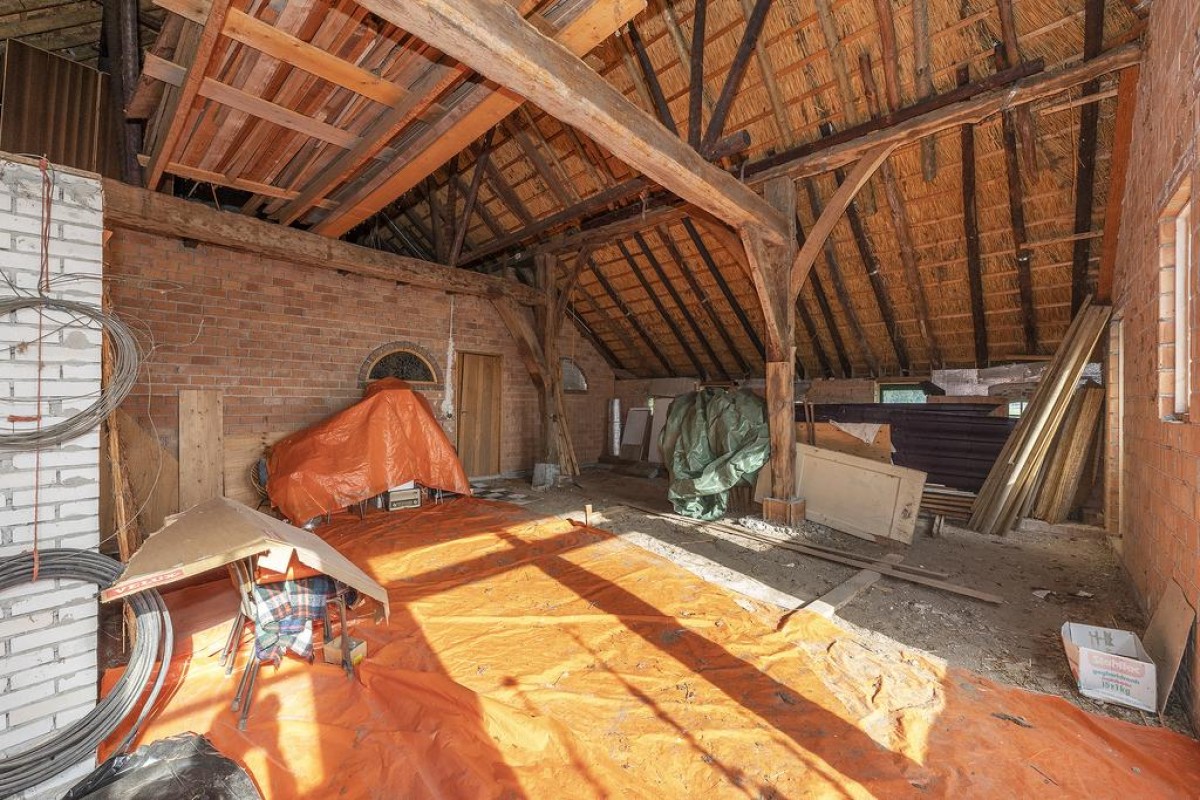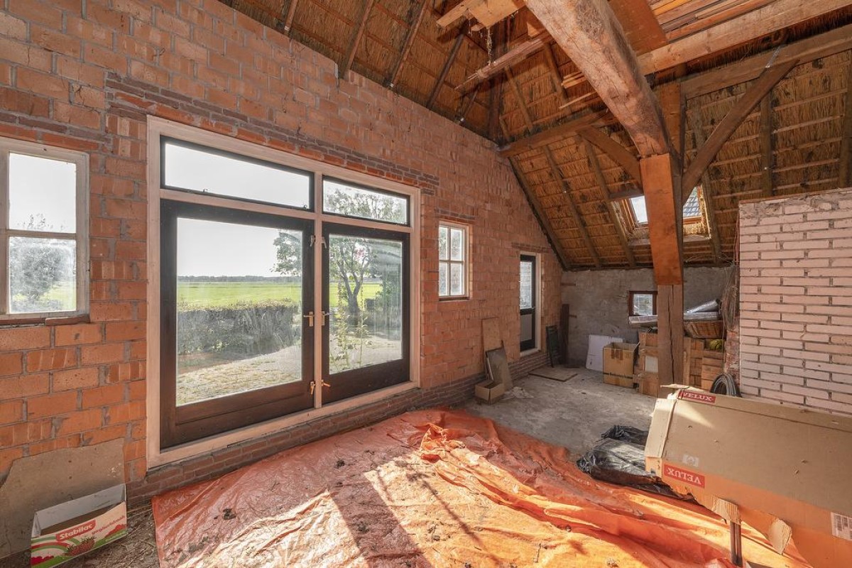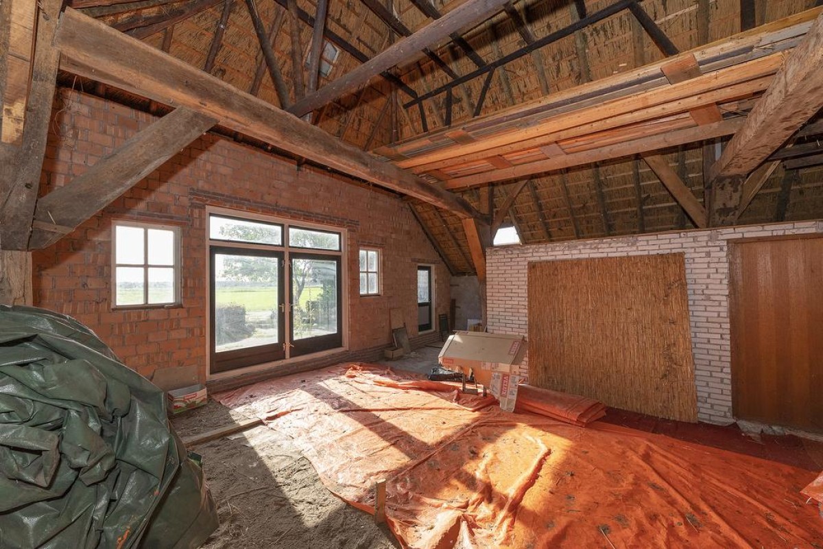 Allereerst: De boerderij is aan de buitenzijde de laatste jaren volledig aangepakt, in 2014 heeft de hoofd woning een nieuw dak gekregen maar liefst een oppervlakte van 499,77 m2, de muren rondom zijn aangepakt voorzien van grotendeels nieuwe kozijnen met nieuw glas. De binnen zijde van de woning is deels nog niet verbouwd en kan naar eigen voorkeur worden ingevuld. De oude deel biedt uiteraard prachtige mogelijkheden om iets unieks te realiseren. Momenteel wordt alleen de begane grond vloer gebruikt voor bewoning. In totaal is het oppervlak op de begane grond ca 335 m2 waarvan er momenteel 215 m2 als woonoppervlak is te kwalificeren. Het is zelfs mogelijk om een verdieping te realiseren zodat het woonoppervlak in de hoofdwoning aanzienlijk vergroot kan worden.