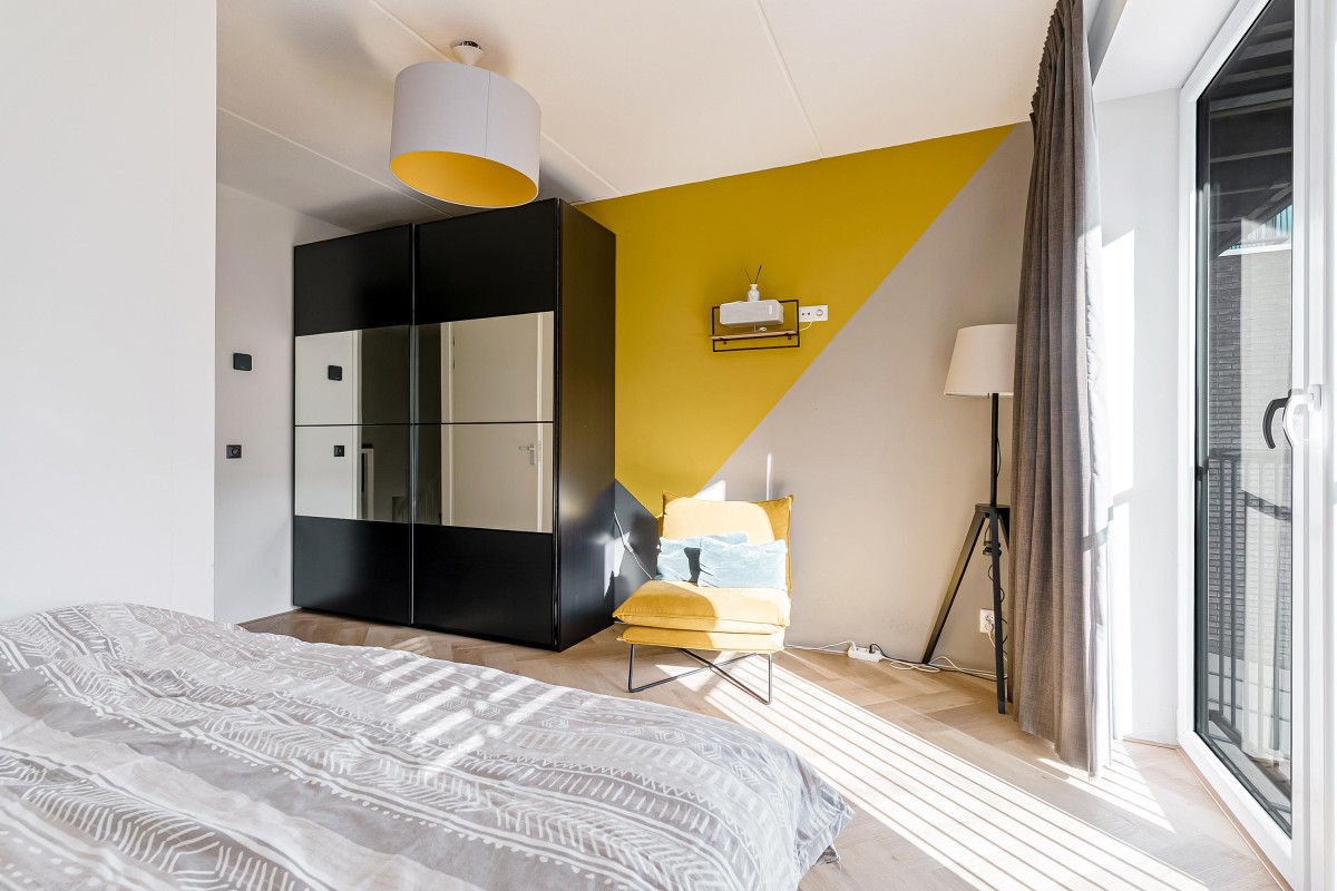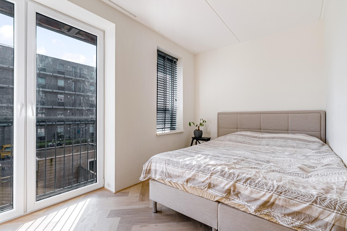 Deze verdieping is afgewerkt met dezelfde mooie visgraat PVC-vloer. De slaapkamer aan de achterzijde beschikt bovendien over een speels Frans balkon met openslaande deuren.