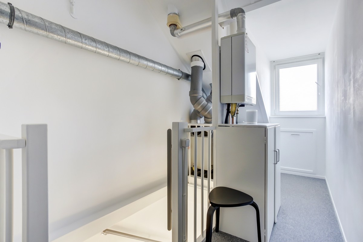 Tweede verdieping: vaste trap naar de ruime zolderverdieping. Aan de voorzijde van de woning is in 2019 een kunststof dakkapel met HR++ glas over de maximale breedte van de woning gerealiseerd. Hierdoor beschikt deze verdieping over veel licht en een mooie 4e slaapkamer. Op deze verdieping is tevens veel bergruimte, de c.v.-ketel, balansventilatie en was-apparatuur gesitueerd. Ook deze verdieping beschikt over een moderne vloerbedekking.