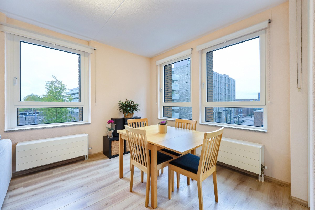 Upon entering, you immediately notice that this is a home with character. The large windows on both the west and south sides allow a flood of light to pour in throughout the day. The open, spacious living area offers comfort and atmosphere, with a sleek yet warm design. Through the sliding doors, you step onto the balcony, where you can enjoy a view of the harbor, the perfect spot to relax, start your day, or unwind in the evening.