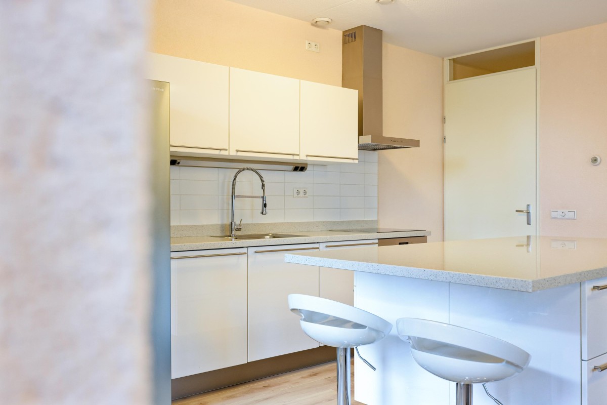 De keuken is een echte eyecatcher. Het strakke keukeneiland met een geïntegreerde bartafel, de rustige vormgeving en de slimme indeling maken deze ruimte niet alleen ideaal voor dagelijks gebruik, maar ook perfect voor het bereiden van uitgebreide diners en het ontvangen van gasten. Verder is er een separaat toilet met warm water, en daarnaast is het separaat toilet voorzien van een bidet-handdouche. De woning heeft ook een mooie, lichte vloer die een frisse en moderne uitstraling geeft.