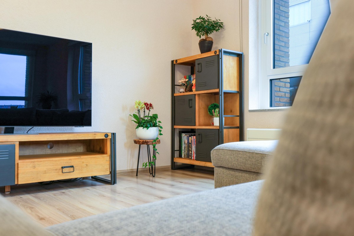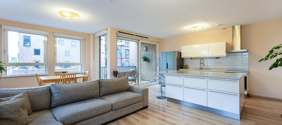 Bij binnenkomst merk je direct dat dit een woning is met karakter. De grote raampartijen aan zowel de west en zuidzijde laten de hele dag door een overvloed aan licht binnenstromen. De open, ruime leefruimte biedt comfort en sfeer, met een strak maar warm design. Via de schuifpui stap je zo het balkon op, waar je geniet van uitzicht over de haven, de perfecte plek om te ontspannen, de dag te beginnen of juist af te sluiten.
