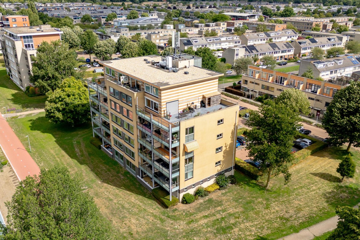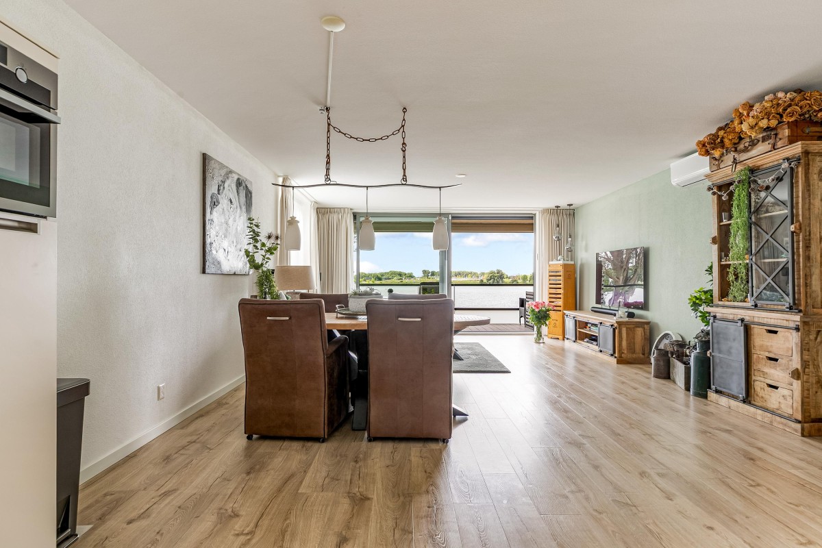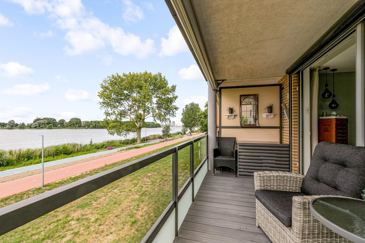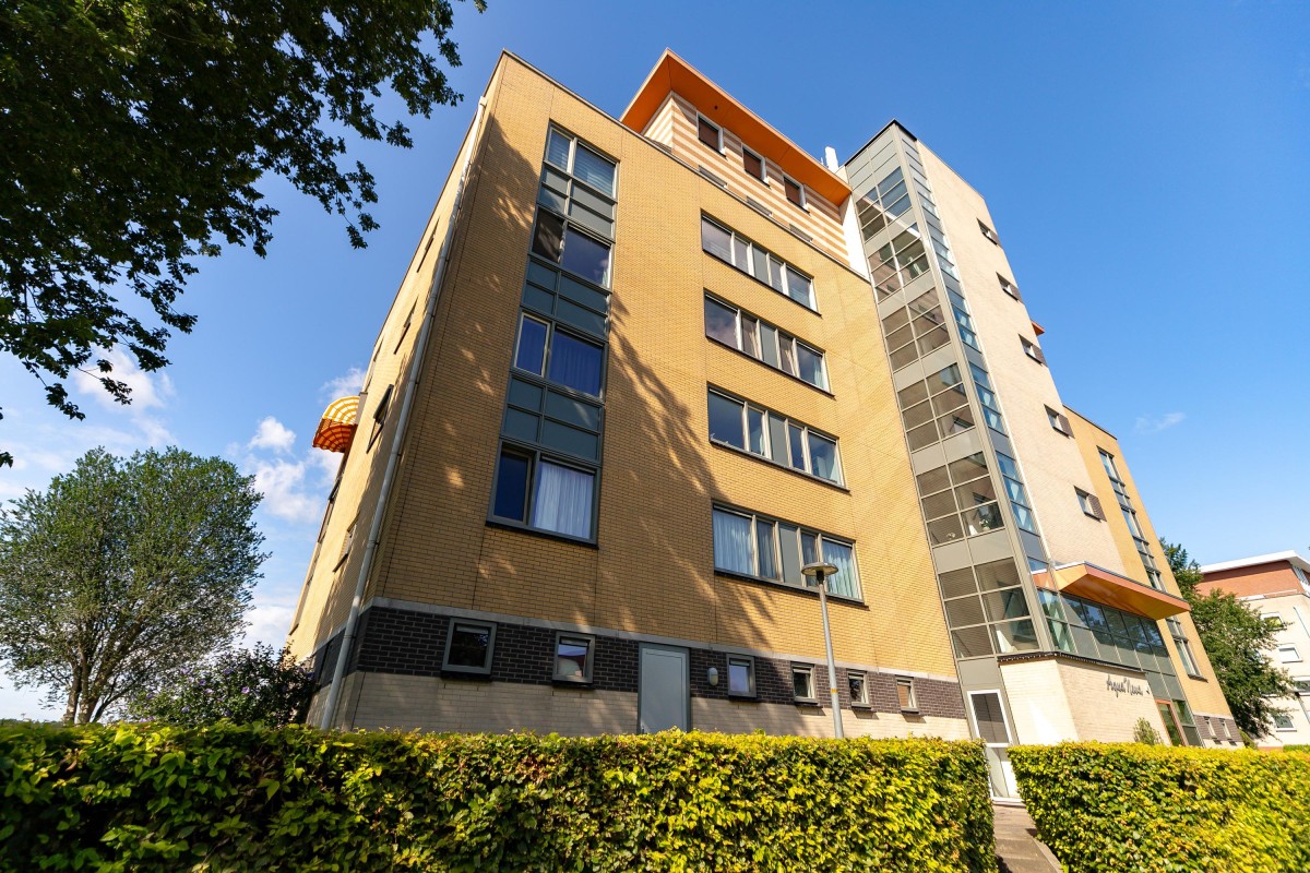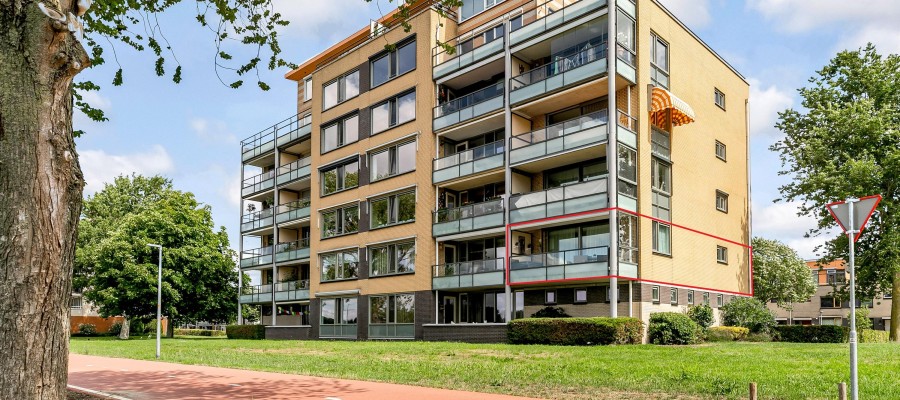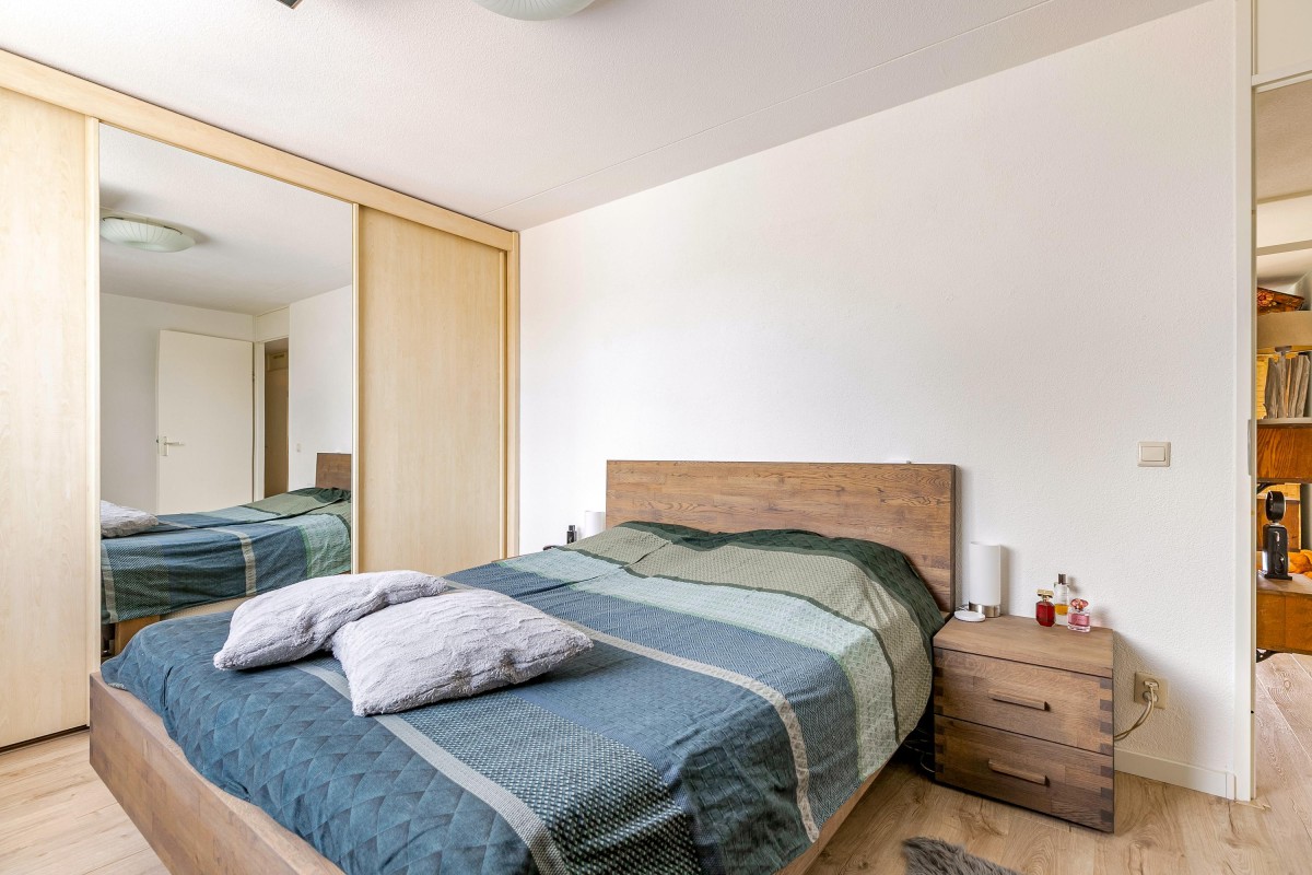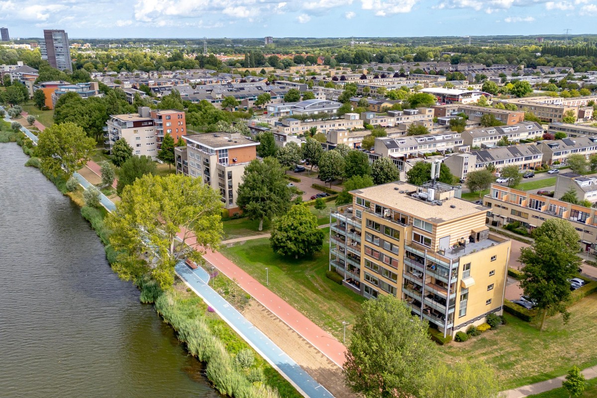 Entree/hal met meterkast en garderobe, berging, separate toilet en toegang tot de twee slaapkamers, badkamer en de ruime en lichte woonkamer. Bij binnenkomst van de woonkamer wordt je meteen naar het schitterende uitzicht getrokken. De woonkamer is zeer royaal en heeft een schuifpui naar het zonnige balkon van 11m2 op het zuidwesten. Het appartement is zonnig georiënteerd waardoor er ook veel lichtinval is. Voor de zomerse dagen kan de zon goed worden buitengehouden dankzij de screen/uitvalscherm (beiden elektrisch) op het balkon. Om ook uit de wind te kunnen zitten is op het balkon een extra glazen scherm aangebracht. De open keuken (2012) is in een U-vorm opgesteld en is voorzien van een graniet werkblad en lichte fronten. De keuken is voorzien van de volgende inbouwapparatuur: inductie kookplaat, afzuigkap, combimagnetron (dec, 2024), vaatwasser, quooker en een Amerikaanse koelkast welke ter overname wordt aangeboden. Aangezien het appartement op een hoek is gelegen heeft ook de keuken een extra zijraam. Zowel de woonkamer als de hal is voorzien van een airco unit. De twee ruime slaapkamers (voorheen 3) hebben voldoende ruimte voor een grote kledingkast en zijn gelegen aan de voorzijde van het appartement. De badkamer (2014) is voorzien van lichte betegeling tot aan het plafond, wastafelmeubel inclusief handdoekenkast, inloopdouche en aansluiting voor de wasmachine. Het gehele appartement is voorzien van een mooie en hoogwaardige laminaatvloer.