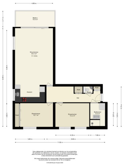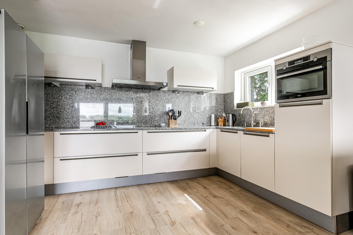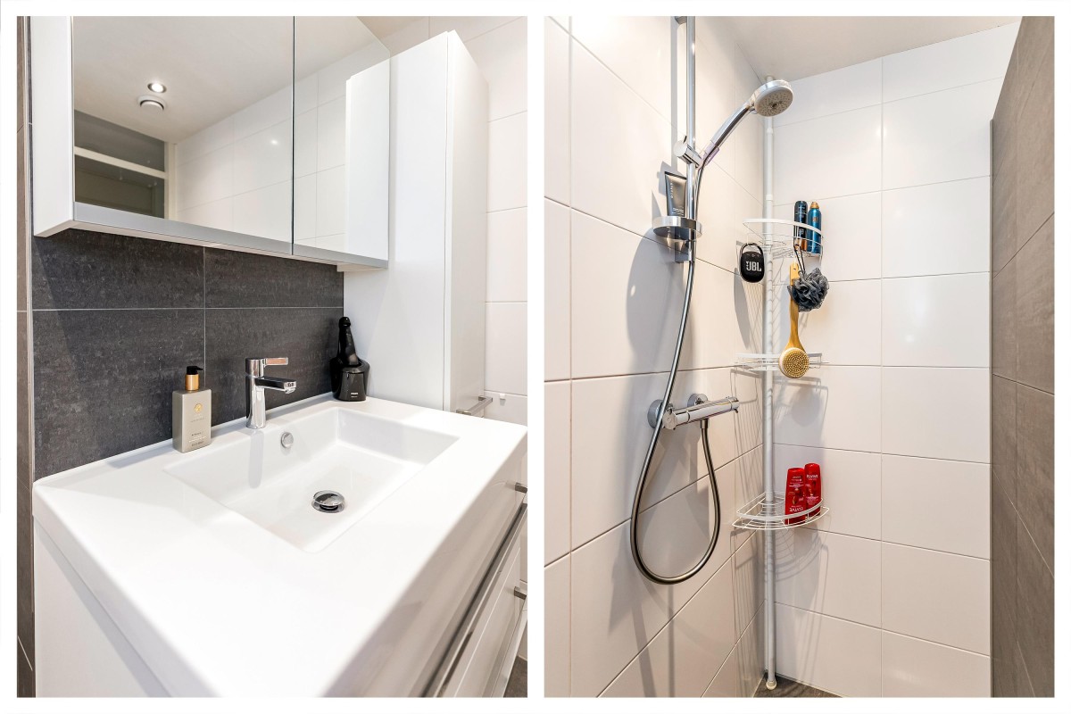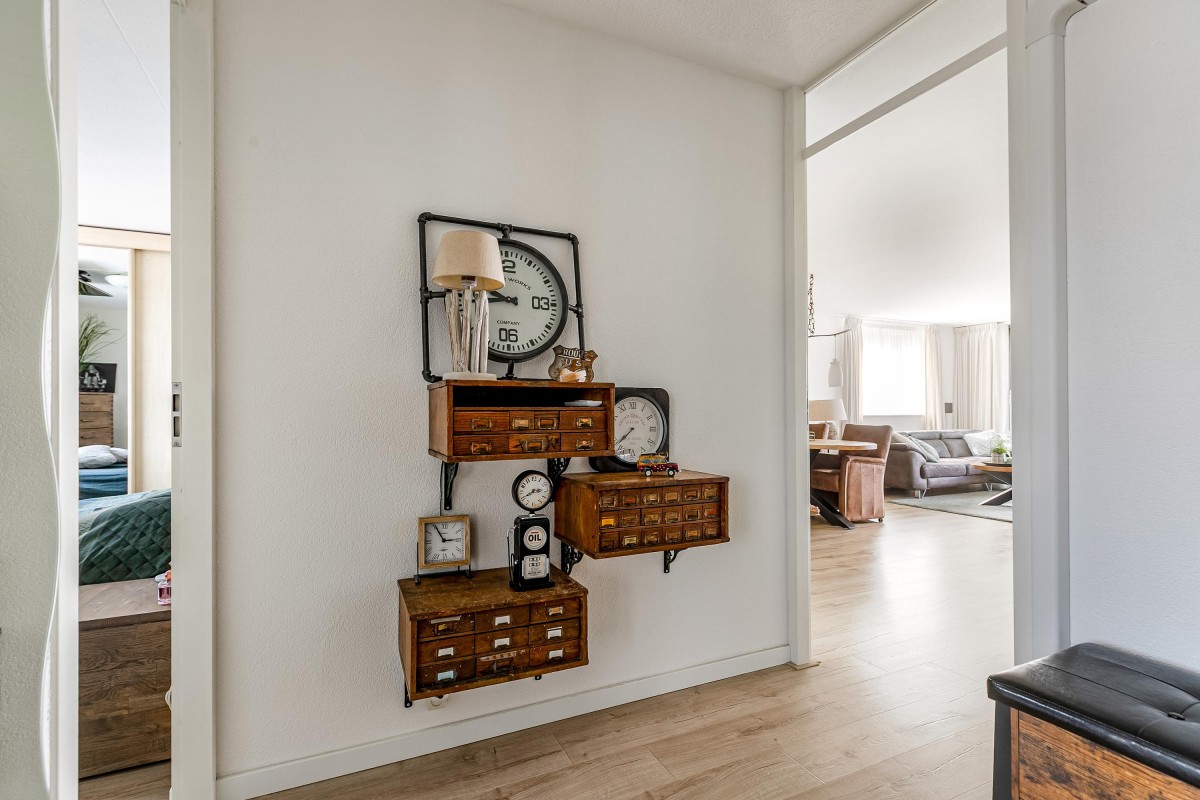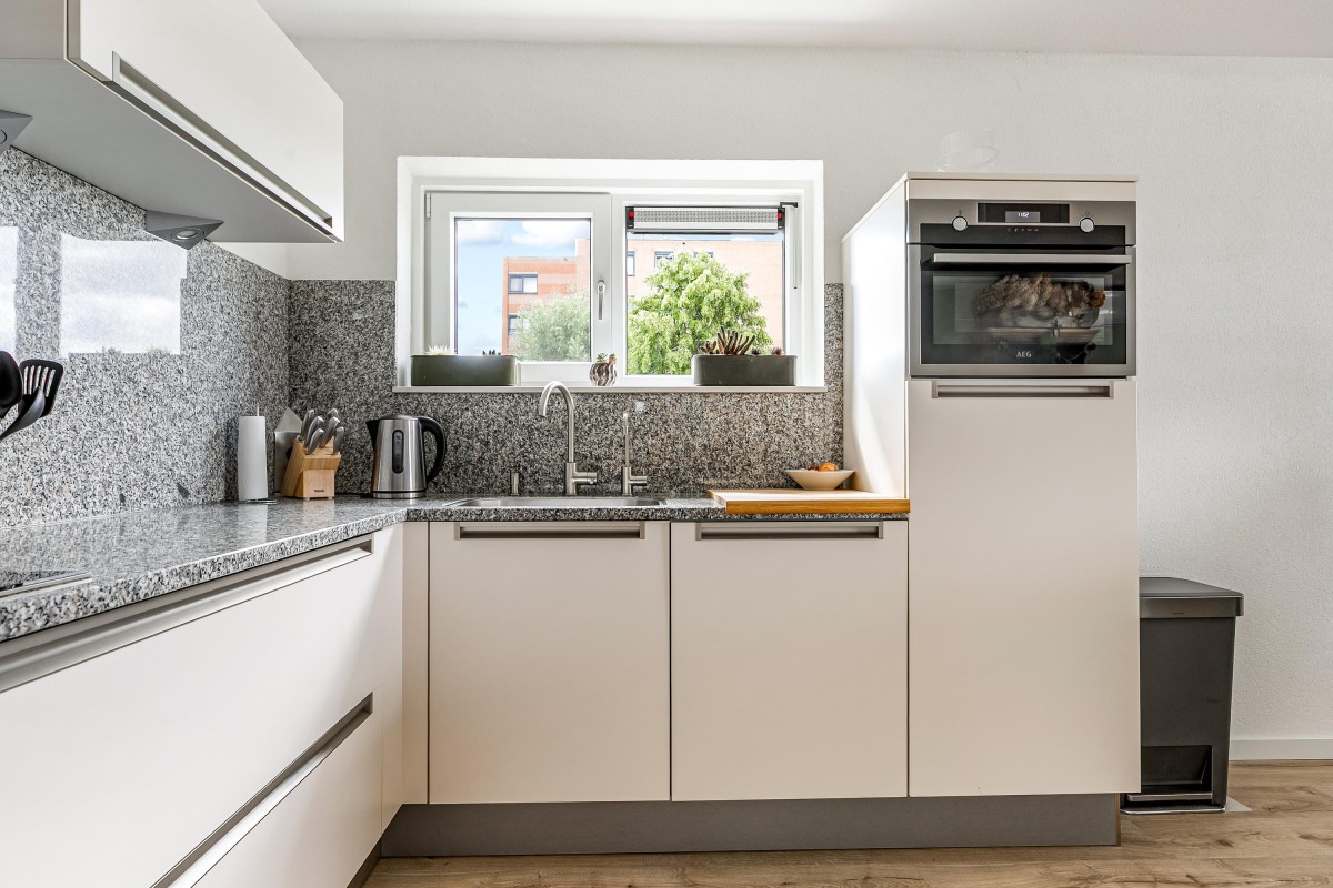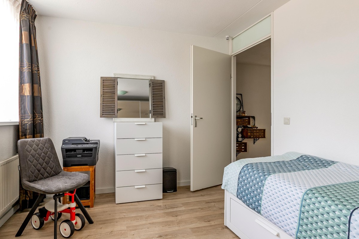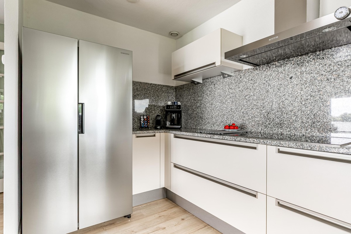 Entree/hal met meterkast en garderobe, berging, separate toilet en toegang tot de twee slaapkamers, badkamer en de ruime en lichte woonkamer. Bij binnenkomst van de woonkamer wordt je meteen naar het schitterende uitzicht getrokken. De woonkamer is zeer royaal en heeft een schuifpui naar het zonnige balkon van 11m2 op het zuidwesten. Het appartement is zonnig georiënteerd waardoor er ook veel lichtinval is. Voor de zomerse dagen kan de zon goed worden buitengehouden dankzij de screen/uitvalscherm (beiden elektrisch) op het balkon. Om ook uit de wind te kunnen zitten is op het balkon een extra glazen scherm aangebracht. De open keuken (2012) is in een U-vorm opgesteld en is voorzien van een graniet werkblad en lichte fronten. De keuken is voorzien van de volgende inbouwapparatuur: inductie kookplaat, afzuigkap, combimagnetron (dec, 2024), vaatwasser, quooker en een Amerikaanse koelkast welke ter overname wordt aangeboden. Aangezien het appartement op een hoek is gelegen heeft ook de keuken een extra zijraam. Zowel de woonkamer als de hal is voorzien van een airco unit. De twee ruime slaapkamers (voorheen 3) hebben voldoende ruimte voor een grote kledingkast en zijn gelegen aan de voorzijde van het appartement. De badkamer (2014) is voorzien van lichte betegeling tot aan het plafond, wastafelmeubel inclusief handdoekenkast, inloopdouche en aansluiting voor de wasmachine. Het gehele appartement is voorzien van een mooie en hoogwaardige laminaatvloer.