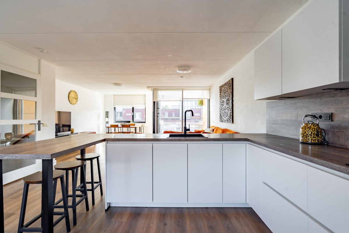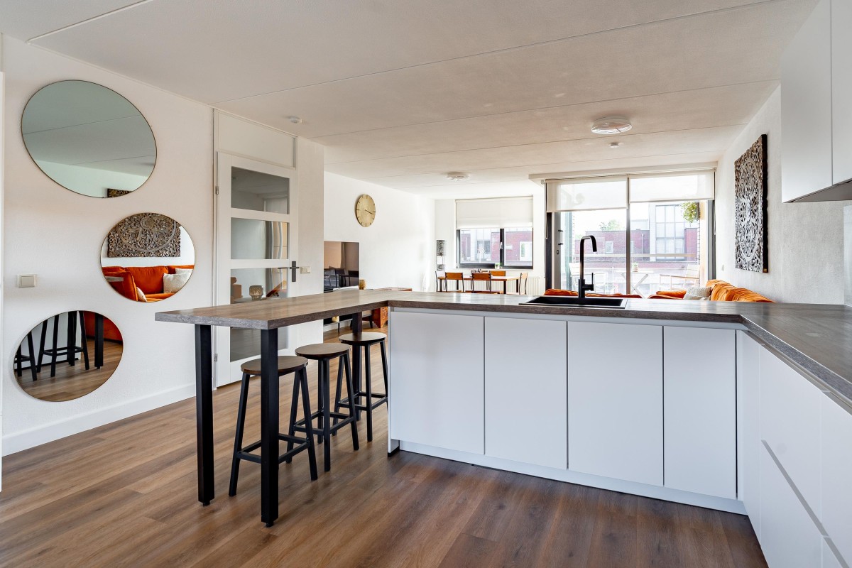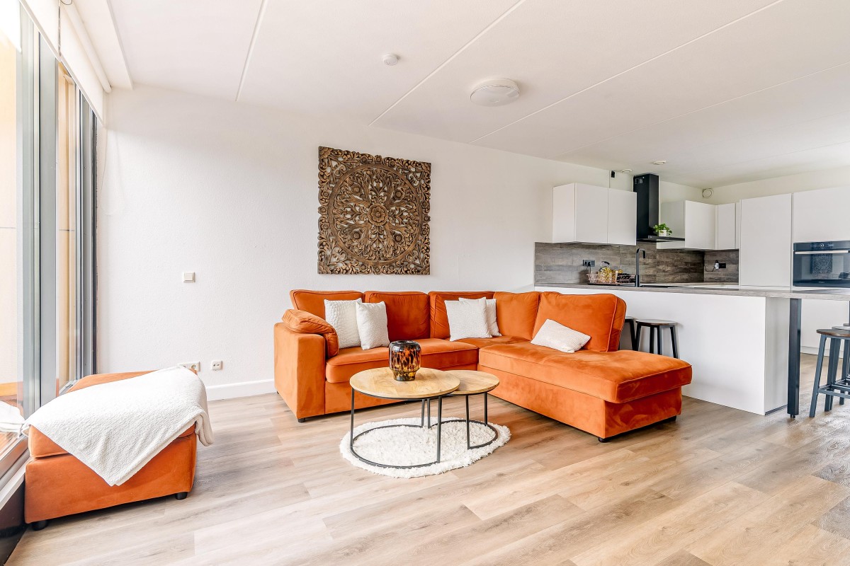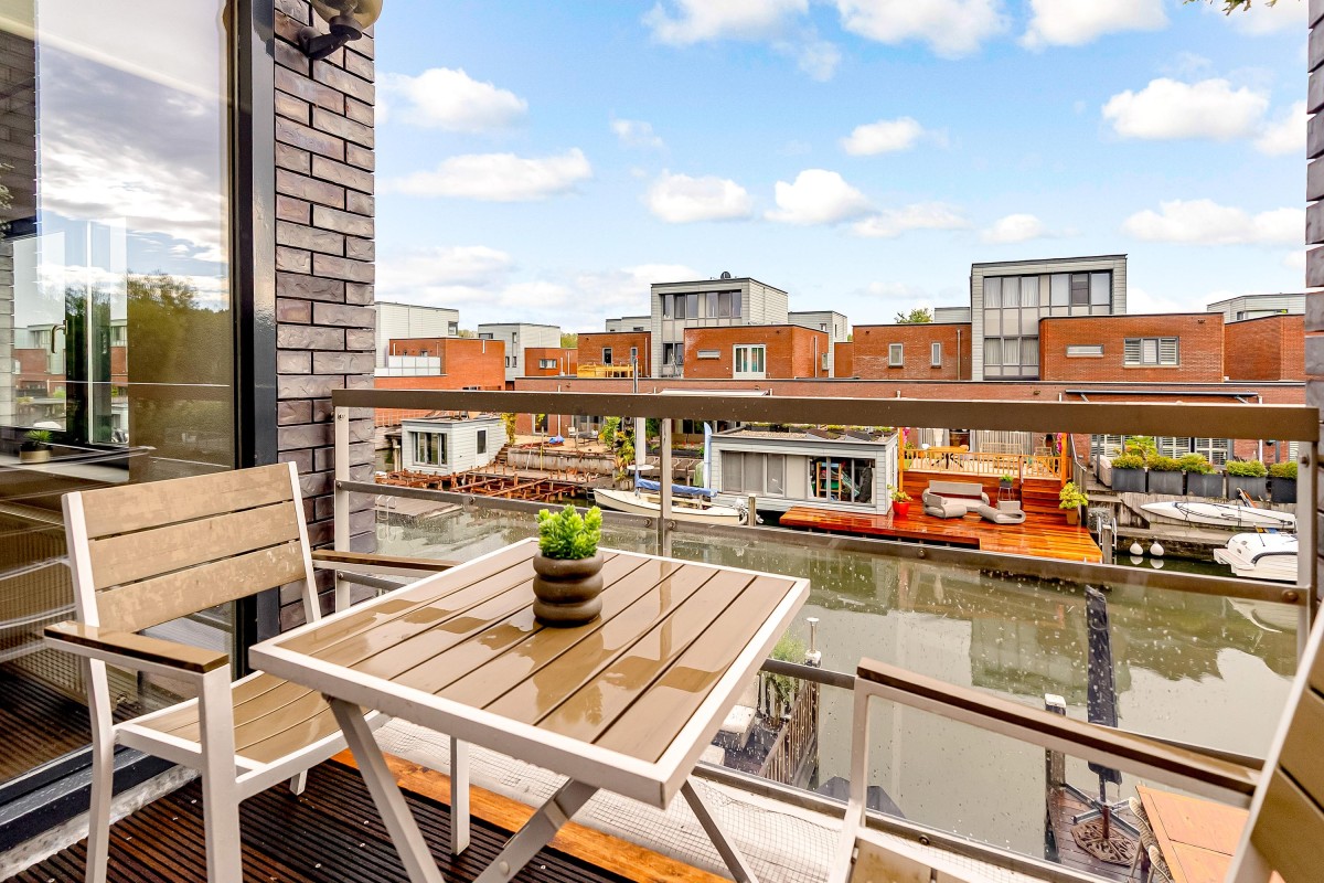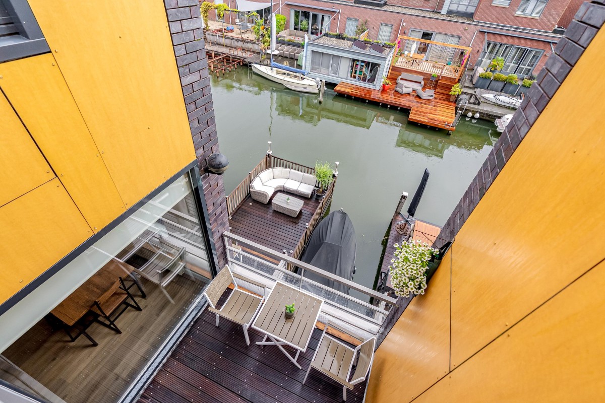 - Woonkamer ruim 30 m2 aan de waterzijde met schuifpui naar dakterras.