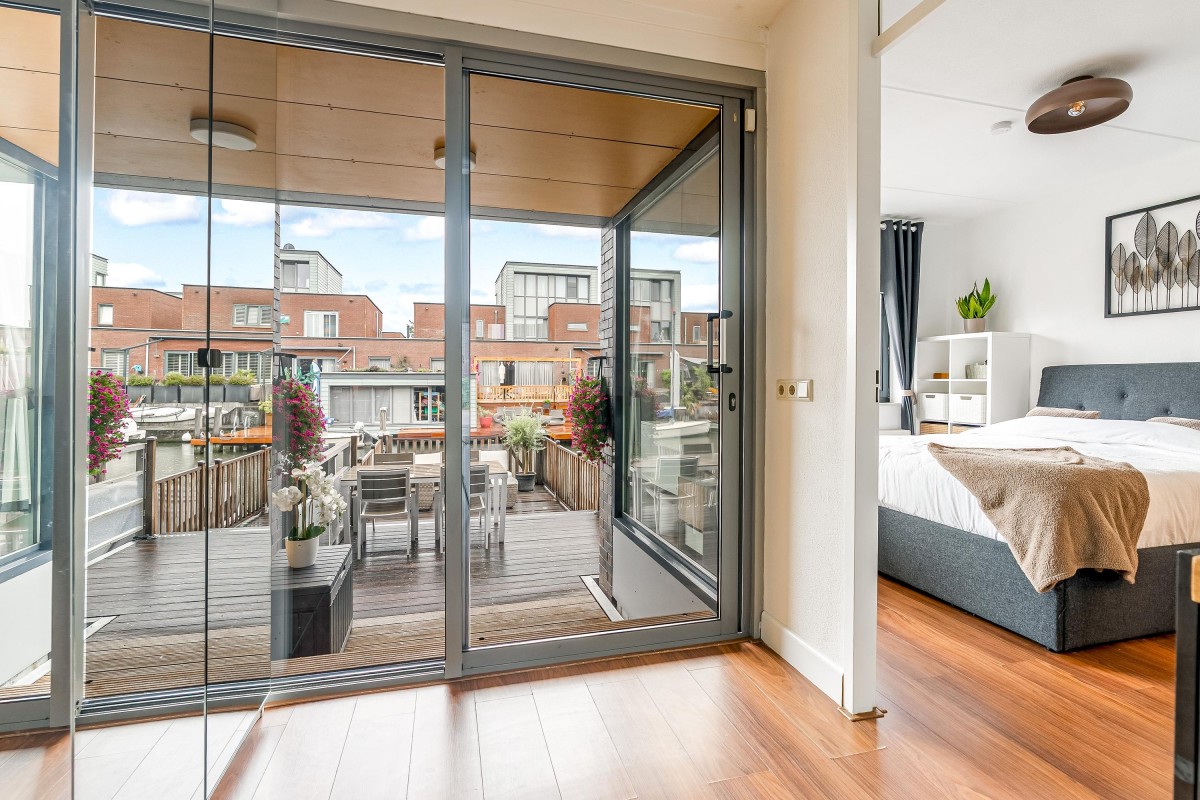 - 1 slaapkamer aan waterzijde, 1 slaapkamer aan voorzijde.