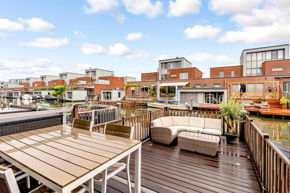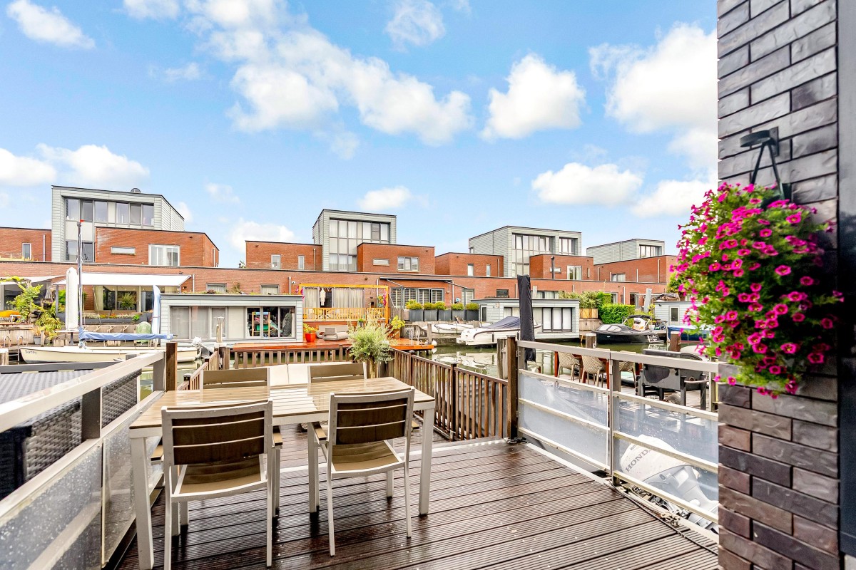 - Middels de schuifpui in de hal stapt u het grote, heerlijke zonneterras/steiger op, gelegen op het zuidoosten waar u heerlijk van de zon kunt genieten.