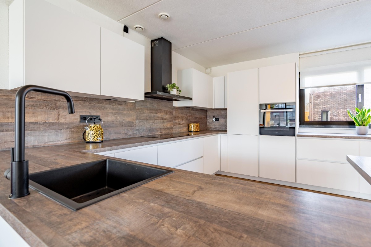 - De keuken uit 2023 heeft voldoende bergruimte in onder en bovenkasten, lades en carrouselkast.
