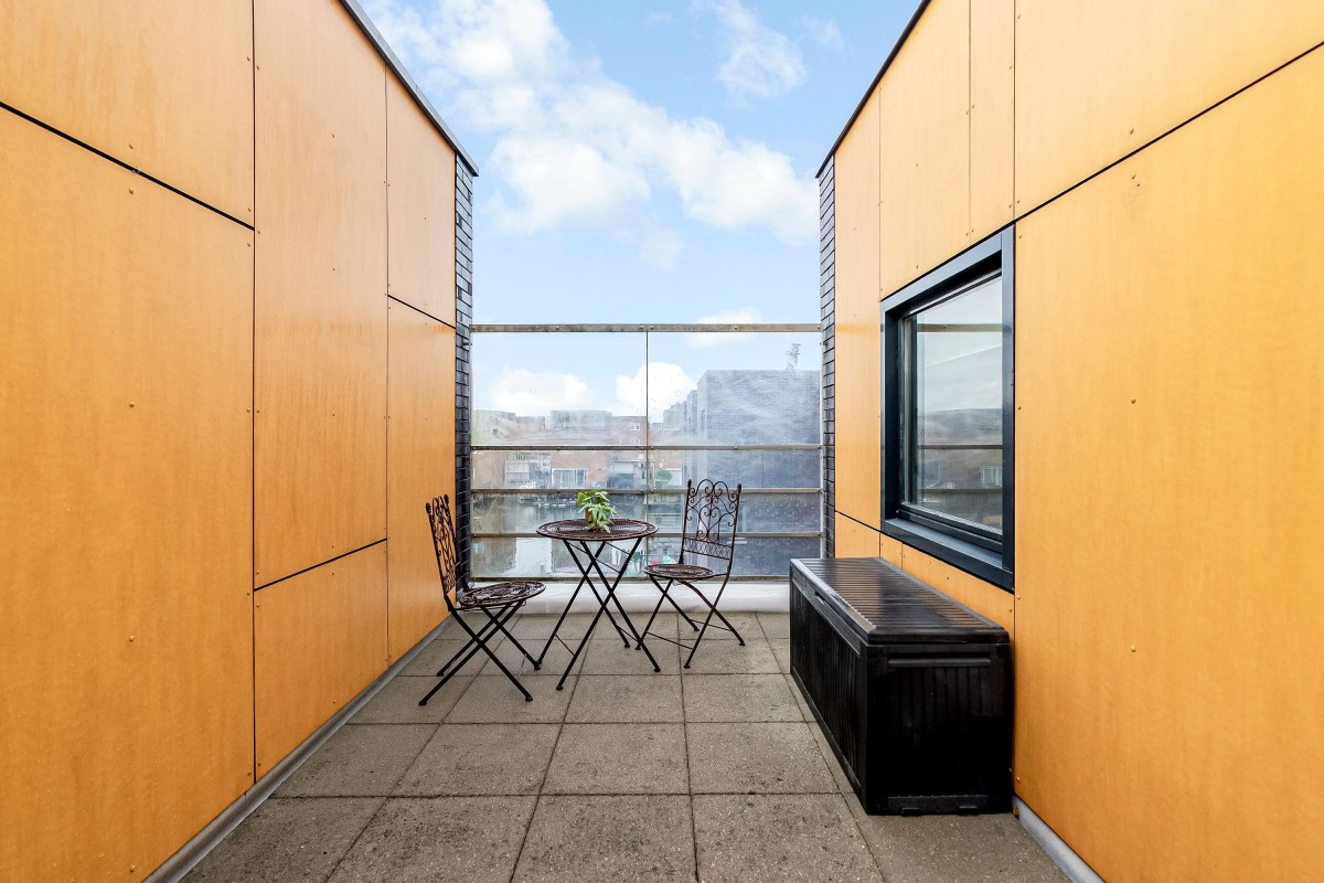 - Woningdiep dakterras met achterzijde op zuidoosten en voorzijde op noordwesten.
