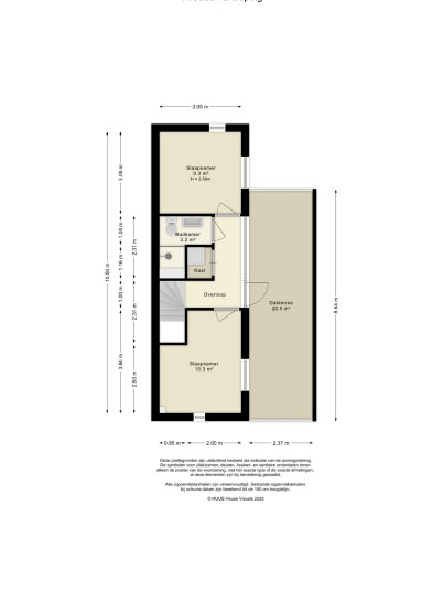 - Overloop met wasruimte, 2 slaapkamers, 2e badkamer en dakterras.