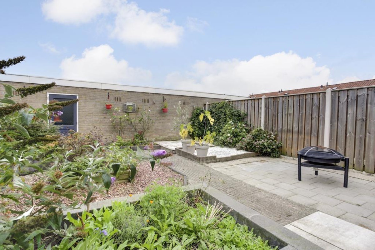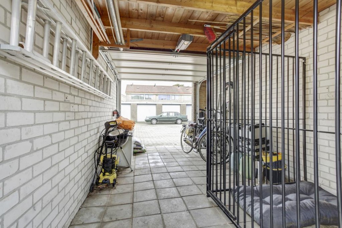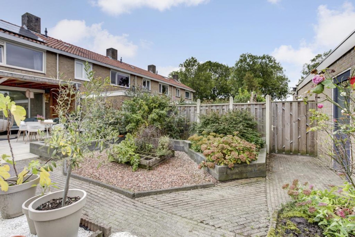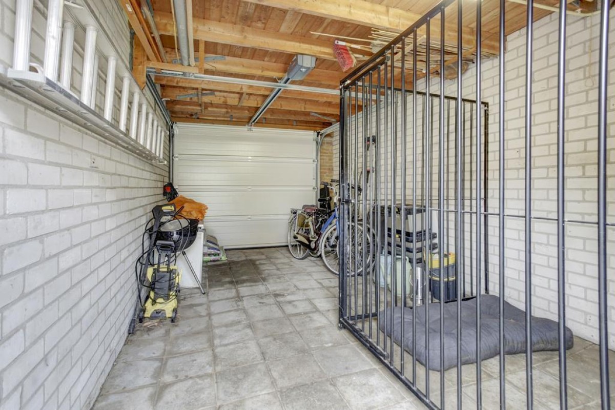 Begane grond: ruime entree met portaal, doorgang naar de hal met meterkast, moderne toiletruimte met hangcloset, kelderkast onder de bordestrap en doorgang naar de ruime living welke voorzien is van een mooie houten vloer. Een ruime dichte keuken voorzien van een vaste kastenwand en een ingebouwde koelkast, oven en gaskookplaat met afzuigkap. Doorgang naar aangebouwde bijkeuken waar de wasmachine, droger, vaatwasser en een uitstortgootsteen gesitueerd zijn, Vanuit de bijkeuken is de aangebouwde stenen berging alsmede de tuin bereikbaar. Het terras tegen de achtergevel is overdekt middels een fraaie aangebouwde overkapping. De tuin is op het zuiden gelegen en mooi aangelegd. Aan de achterzijde van het perceel is een stenen garage met loopdeur bereikbaar welke een kanteldeur naar de parkeerplaats achter de woning biedt.