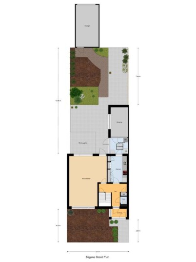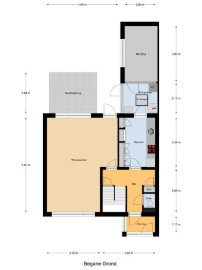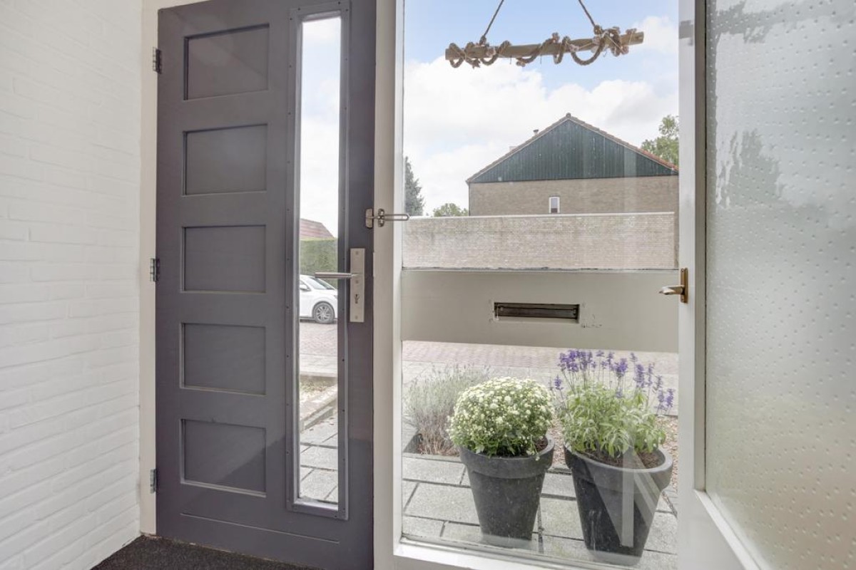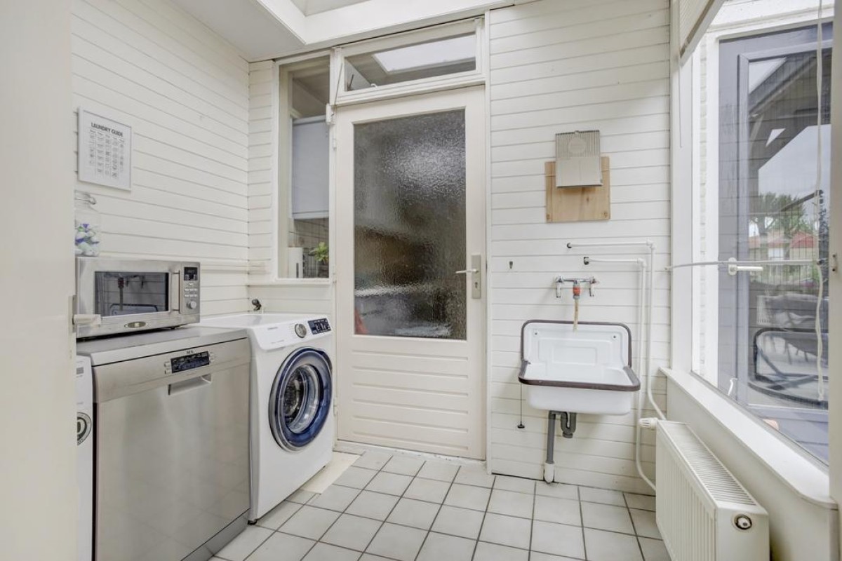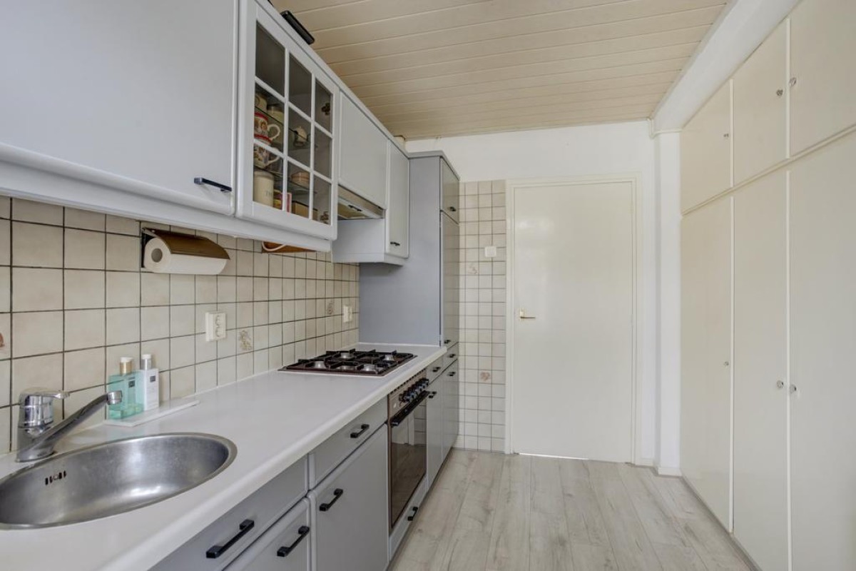 Begane grond: ruime entree met portaal, doorgang naar de hal met meterkast, moderne toiletruimte met hangcloset, kelderkast onder de bordestrap en doorgang naar de ruime living welke voorzien is van een mooie houten vloer. Een ruime dichte keuken voorzien van een vaste kastenwand en een ingebouwde koelkast, oven en gaskookplaat met afzuigkap. Doorgang naar aangebouwde bijkeuken waar de wasmachine, droger, vaatwasser en een uitstortgootsteen gesitueerd zijn, Vanuit de bijkeuken is de aangebouwde stenen berging alsmede de tuin bereikbaar. Het terras tegen de achtergevel is overdekt middels een fraaie aangebouwde overkapping. De tuin is op het zuiden gelegen en mooi aangelegd. Aan de achterzijde van het perceel is een stenen garage met loopdeur bereikbaar welke een kanteldeur naar de parkeerplaats achter de woning biedt.