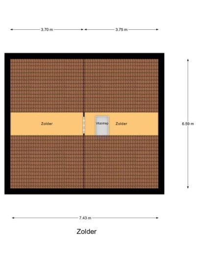 Tweede verdieping: middels een vlizotrap is de grote bergzolder bereikbaar waar de c.v.-ketel staat opgesteld.